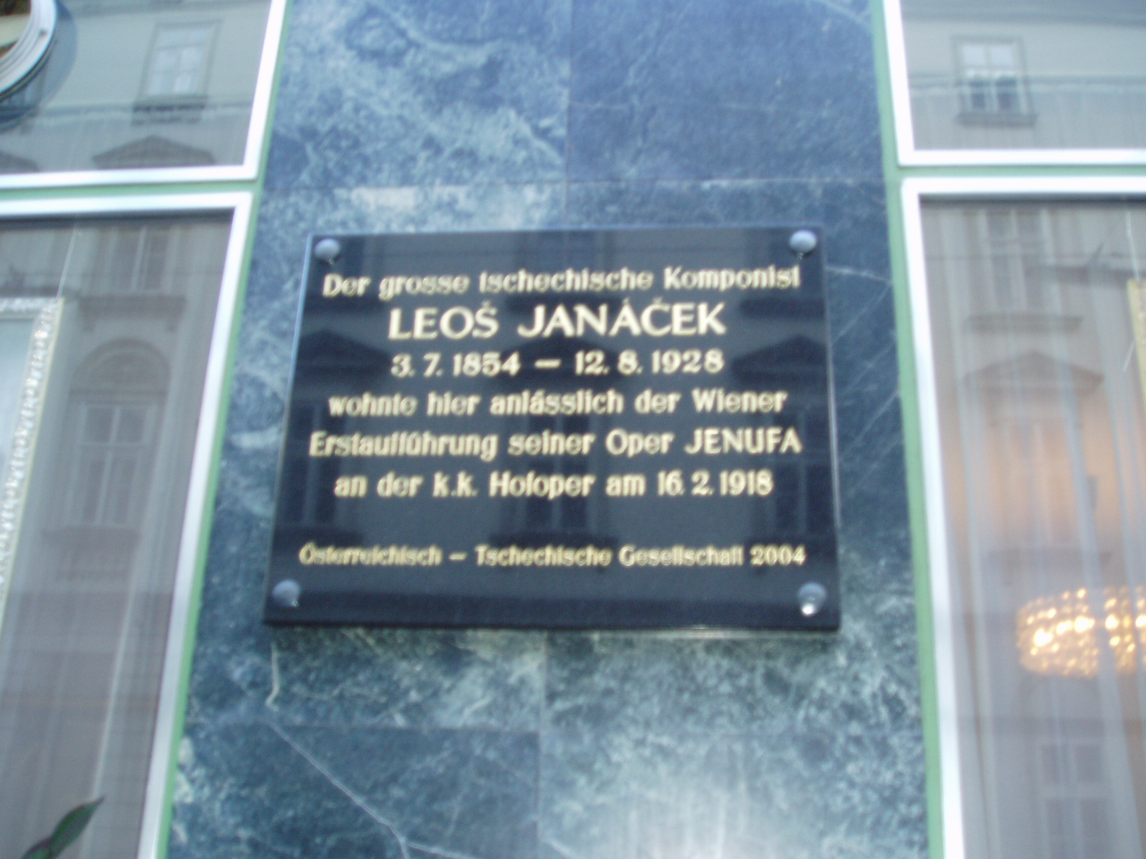 Nyilvános 1626 | 3540 | Fleischmarkt 24. Hotel Sport | A szálloda épületének homlokzatán Leos Janacek zeneszerző neve olvasható, aki 1918-ban itt szállt meg, amikor Jenufa című operáját bemutatták az operaházban. Ezen a helyen korábban is szálloda állt, megszálltak benne többek között Mozart, Liszt és Wagner is. |