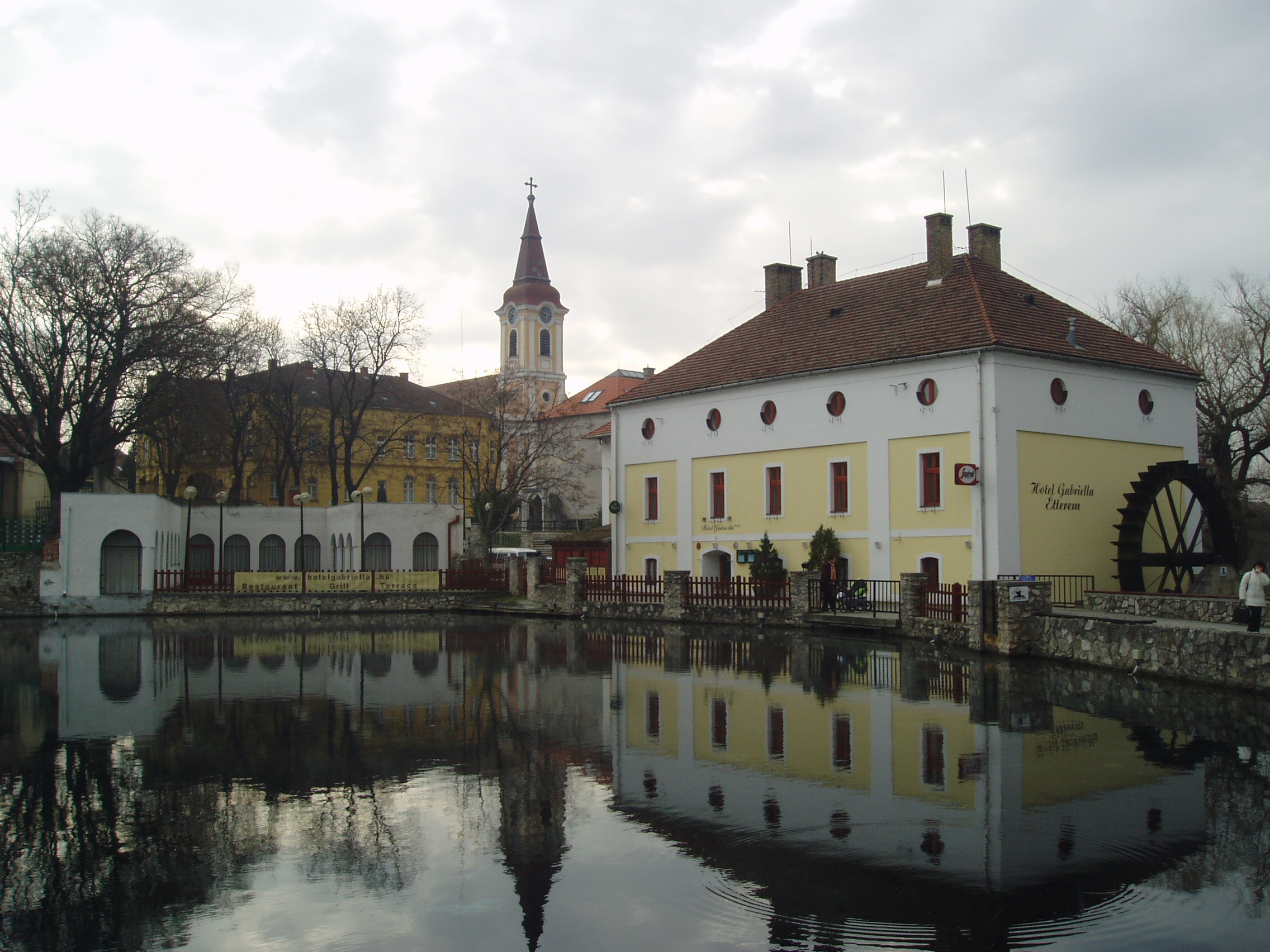Nyilvános 1121 | 1901 | Tapolca, Malom-tó | A Malom-tó vagy Nagytó és környéke Tapolca ismert, képeslapokon is gyakran szereplő kedves helye. Jobbra az egykori malom szállodává alakított épülete áll, amelyet Batsányi János feleségéről neveztek el. A vízikerék ma is működik. A tó mögött a Templom domb, Tapolca ősi városközpontja látszik. Itt állt egykor a vár, amelynek kapuját és falai egy részét feltárták. A háttérben látszó templom eredetileg román stílusban épült, amelyet később gótikus, majd barokk stílusban átépítettek. Déli külső falán középkori freskótöredéket tártak fel. Ebben a templomban keresztelték meg Batsányi Jánost. A felvétel 2007 februárjában készült. Felh. irod.: Látnivalók Veszprém megyében. Miskolc, Well-PRess, 2000 Hangodi László: Múltbanéző - kiállításvezető a Tapolcai Városi Múzeum tárlataihoz. Tapolca, 2006 |