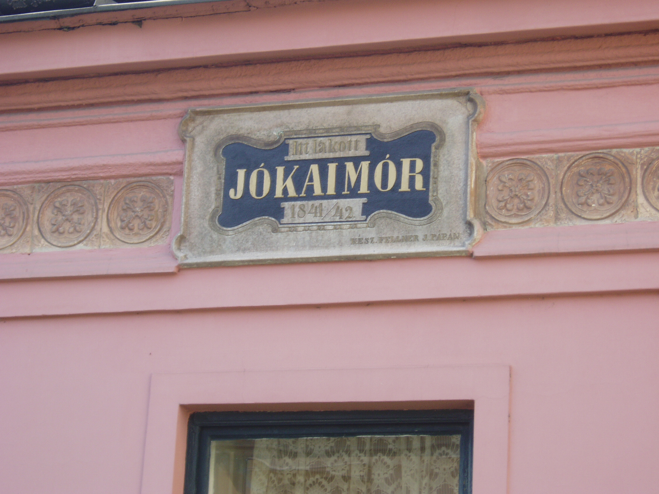 Nyilvános 1078 | 1920 | Pápa, Jókai utca 13. | Klasszicista stílusban, 1820 körül épült egyemeletes lakóház. Homlokzatán emléktábla jelzi, hogy pápai diák korában, 1841/42-ben itt lakott Jókai Mór. Jókai - akkor még Jókay - Mórt sógora, Vály Ferenc hozta Pápára 1841. aug. 21-én különbözeti vizsgát tenni, ami után a fiú a Kollégium (lásd: Pápa, Petőfi u. 13.) diákja lett. Nov. 1-jén költözött be bebbe a házba, Klára Mihály otthonába, kosztosdiákként. (Még idős kori levelében is emlegette a "derék" Klára Mariska főztjét.) Együtt lakott Kerkapoly Károly későbbi filozófiaprofesszorrel és pénzügyminiszterrel és egy Pap Dénes nevű iskolatársával. Az itt töltött időben Jókai jeles előmenetelű diák volt. Tanulmányai mellett portréfestéssel is foglalkozott. Visszavonult, szolíd életet élt, amivel táraitól kiérdemelte a "Jámbor" becenevet. Ebben gyerekkori betegségének, tüdő-problémáinak is része volt. Lakótársain kívül elsősorban Orlai Petrich Somával barátkozott. Petőfivel 1842-ben ismerkedett meg. Eltérő egyéniségük ellenére hamar jóban lettek, sok időt töltött Petőfiék szállásán (lásd: Pápa, Petőfi u. 11.), de igazi barátság csak a későbbi kecskeméti években alakult ki közöttük. Bár még elsősorban festőművésznek készült, de novellákat is írt; az egyikkel második díjat nyert 1842-ben (lásd: Pápa, Fő u. 17.). Itt töltött időszaka, a diákélet szokásai, jeles professzorai nagy hatást gyakoroltak életművére. Különösen sok pápai motívum lelhető fel az És mégis mozog a föld és az Egetvívó asszonyszív című regényeiben. A házat még Jókai életében, 1880-ban jelölték meg emléktáblával. A fénykép 2007 áprilisában készült. Felh. irod.: Németh Adél - Szabó Lajos: Pápa. Bp. Panoráma, 1989 Petőfi emlékhelyek a Kérpát-medencében. Kiskőrös, 1996, Petőfi Sándor Társaság "A kényes úrfi s a rongyos baka". Tanulmányok két halhatatlan pápai diákról. Pápa, 2001, Pápai Református Gyűjtemények |