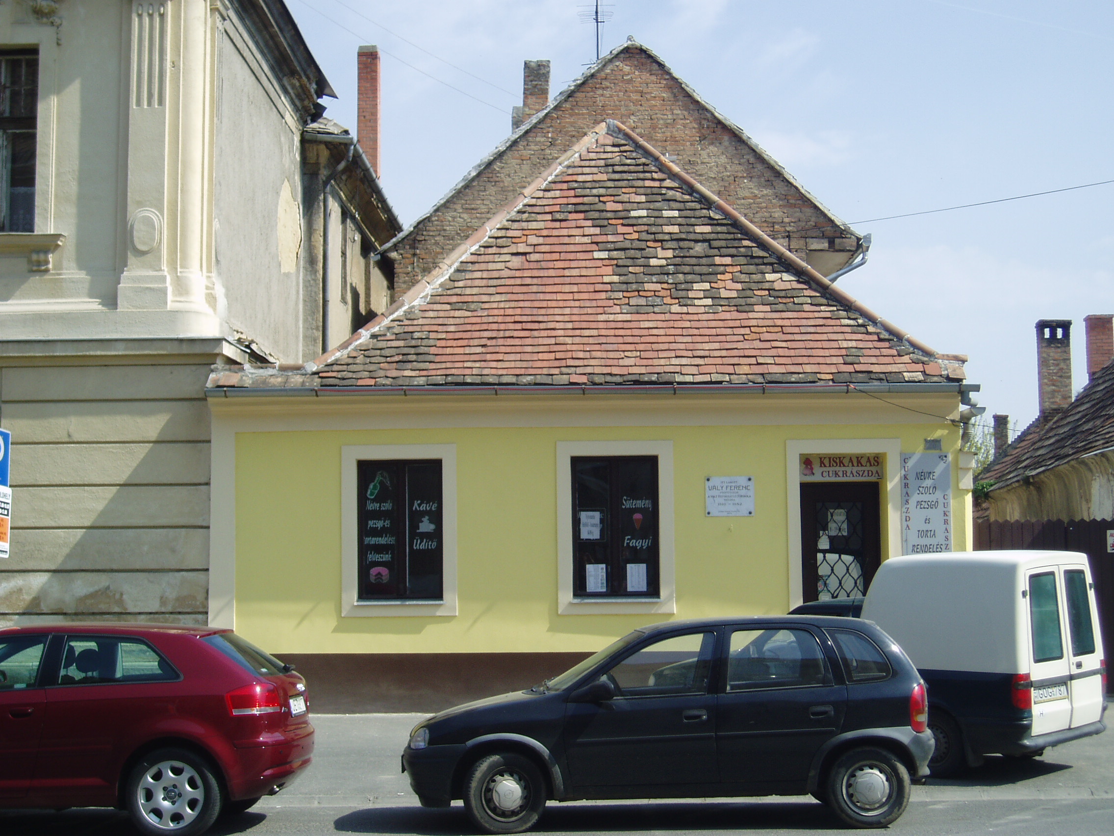 Nyilvános 1081 | 2132 | Pápa, Jókai utca 20. | Ez a kis ház volt Vály Ferenc főiskolai professzor lakóháza pápai évei alatt. Vály Ferenc (Magyarsiófok, 1810. szept. 30. – Pápa, 1882. dec. 13.) tanár, tankönyvíró. 1833-tól néhány évig tanító volt Pápán, de visszakerült Komáromba, ahol 1839-től a református gimnázium igazgatójaként működött. 1839-ben feleségül vette Jókay Esztert, Jókai Mór nővérét. A szabadságharc után, melyben tüzérként vett részt, telepedett le a család Pápán, ahol a református főiskola tanára és a tanítóképző igazgatója volt. Egy természetrajzi és egy kémiai tankönyve jelent meg. 1882-ben hunyt el, a pápai Alsóvárosi temetőben nyugszik (lásd: Pápa, Alsóvárosi temető: Vály Ferenc sírja). Felesége, Jókay Eszter 1816-ban született Komáromban. Számos cikket és visszaemlékezést írt a korabeli folyóiratokba, többek között forrásértékű adatokkal szolgált Jókai Mór gyermekkoráról. 1889. máj. 7-én hunyt el Pápán, férjével közös sírban nyugszik. Leányuk, az ebben a házban (is) nevelkedett Vály Mari Komáromban született 1840. nov. 17.-én. Férjének és gyermekének korai halála után Jókaiékhoz költözött a fővárosba, háztartásuk vezetésében segédkezett. Nagybátyja életét terjedelmes emlékiratban örökítette meg. Pápán hunyt el 1915. május 17-én, sírja szülei nyughelye mellett van (lásd: Pápa, Alsóvárosi temető: Vály Mari sírja). A fénykép 2007 áprilisában készült. Felh. irod.: Németh Adél - Szabó Lajos: Pápa. Bp. Panoráma, 1989 Veszprém megyei életrajzi lexikon. Veszprém, Veszprém Megyei Önkormányzat Közgyűlése, 1998 |