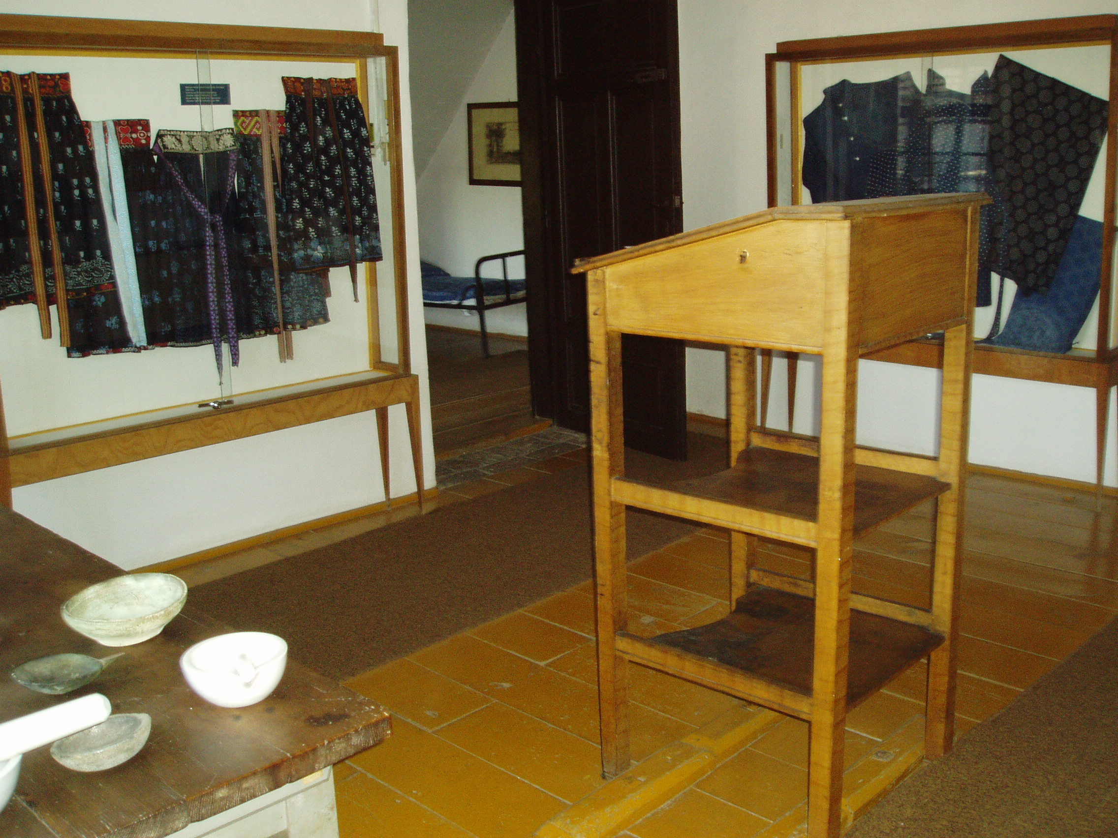 Nyilvános 1011 | 1571 | Pápa, Március 15. tér 12. Kékfestő Múzeum | Az 1962-ben megnyílt pápai Kékfestő Múzeum az egykori Kluge cég üzemének épületében és berendezéséből alakult. A céget 1783-ban alapította Sárváron a Szászországból bevándorolt Carl Friedrich Kluge, aki azonban 1786-ban már Pápán ezen a helyen, a mai Március 15. tér 12. számú épületegyüttes elődjében dolgozott. Fia, Kluge Károly, majd unokája, Kluge Ferenc is az ő mesterségét folytatta. Leszármazottai abban is követték az alapító Carl Friedrichet, hogy hosszas külföldi tanulmányutakat tettek. A cseh, porosz, thüringiai, bajor, svájci és osztrák műhelyekben tapasztaltakat itthon is alkalmazták, s ezzel fokozatosan kiemelkedtek a többi pápai kékfestő közül. A múzeum utca felőli épülete még a XVIII. századból származik. A képen látható udvari, három emeletes üzemépületet az 1860-as években emelték. Földszintjén ma is látható a 15 medencét befogadó küpaszoba, az ún. fekete konyhában a kifőzést és a keményítést szolgáló katlanok sora. Az emeleten a tarkázás, a kézi nyomás helyiségei találhatók, fölöttük pedig a hatalmas zsalugáteres, fedett padlástér és az innen kiugró nyitott erkélyszárító. A virágzó cég munkáját visszavetette az első világháború anyaghiánya és a falusiak népviseletből való fokozatos kivetkőzése. Az üzem végérvényesen 1956-ban zárta be kapuját. Egy és háromnegyed évszázados fennállása folyamán a család hét generációja váltotta egymást. A múzeumban a családi nagyüzem írott és tárgyi emlékei, eredeti berendezési tárgyai láthatók. Emmellett az intézmény folyamatosan kapcsolatot tart a még működő kékfestőmesterekkel, iparművészekkel, akik termékeikkel, alkotásaikkal rendszeresen gyarapítják a gyűjteményt. Ezekből az adományokból és vásárlásokból jött létre a kortárs hazai kékfestő-mesterek és műhelyek termékeiből rendezett állandó kiállítás. A fénykép 2007 áprilisában készült. Felh. irod.: Domonkos Ottó - Tóth Sándorné: Pápa, Kékfestő Múzeum. Bp. 1995, Cartographia. /Tájak, Korok, Múzeumok kiskönyvtára 205./ |