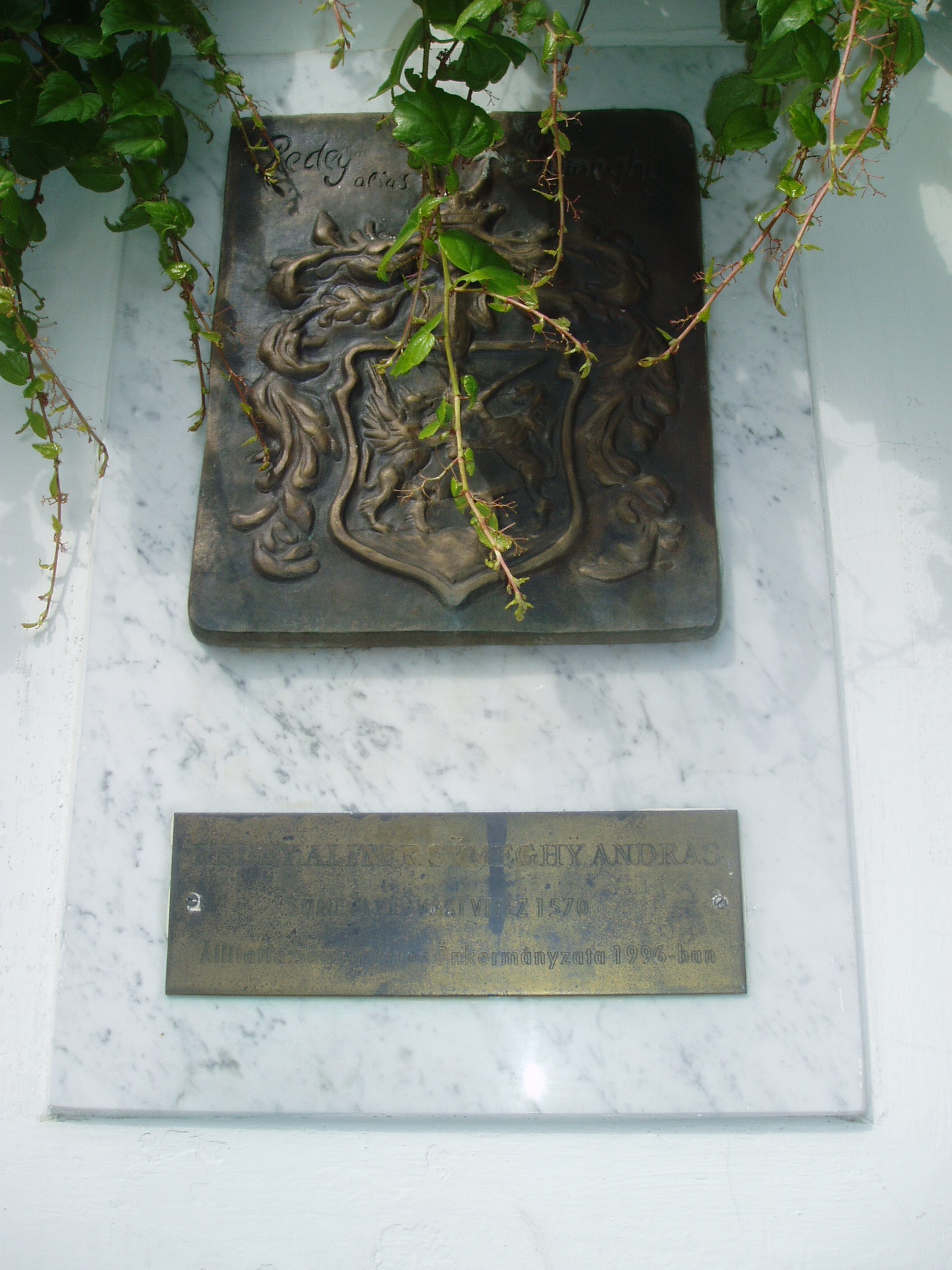 Nyilvános 1112 | 2270 | Sümeg, Panteonfal. Rédey aliter Symeghy András emléktáblája | A Kisfaludy téren, Kisfaludy Sándor szülőháza előtt alakították ki Sümeg Panteonfalát. A képen Rédey - vagy más néven - Symeghy András emléktáblája látható, Máder Ágnes alkotása (1996). Felirata: RÉDEY ALITER SYMEGHY ANDRÁS sümegi végvári vitéz 1570 A Veszprém megyei életrajzi lexikon nem említi, de a közelmúltban megjelent Sümegen egy könyv, amely valószínűleg az ő családját, leszármazottait dolgozza fel: A sümeghi Rédey család. Rédey aliter Symeghy András leszármazói. Sümeg, Önkormányzat, 1996. (Kérem, akinek megvan a könyv, lépjen velem kapcsolatba a Halis István Városi Könyvtár honlapján szereplő e-mail-címemen, hogy néhány alapvető adattal kiegészíthető legyen az emléktábla leírása: K. K.) A fénykép 2007 júniusában készült. Felh. irod.: Koppány Tibor - Kozák Károly: Sümeg útikalauz. Veszprém, Idegenforgalmi Hivatal, 1965 Látnivalók Veszprém megyében. Miskolc, Well-PRess, 2004 Veszprém megyei életrajzi lexikon. Veszprém, Veszprém Megyei Önkormányzat Közgyűlése, 1998 www.ekmk.hu/emlekhely/Emlekhelyek.html |
