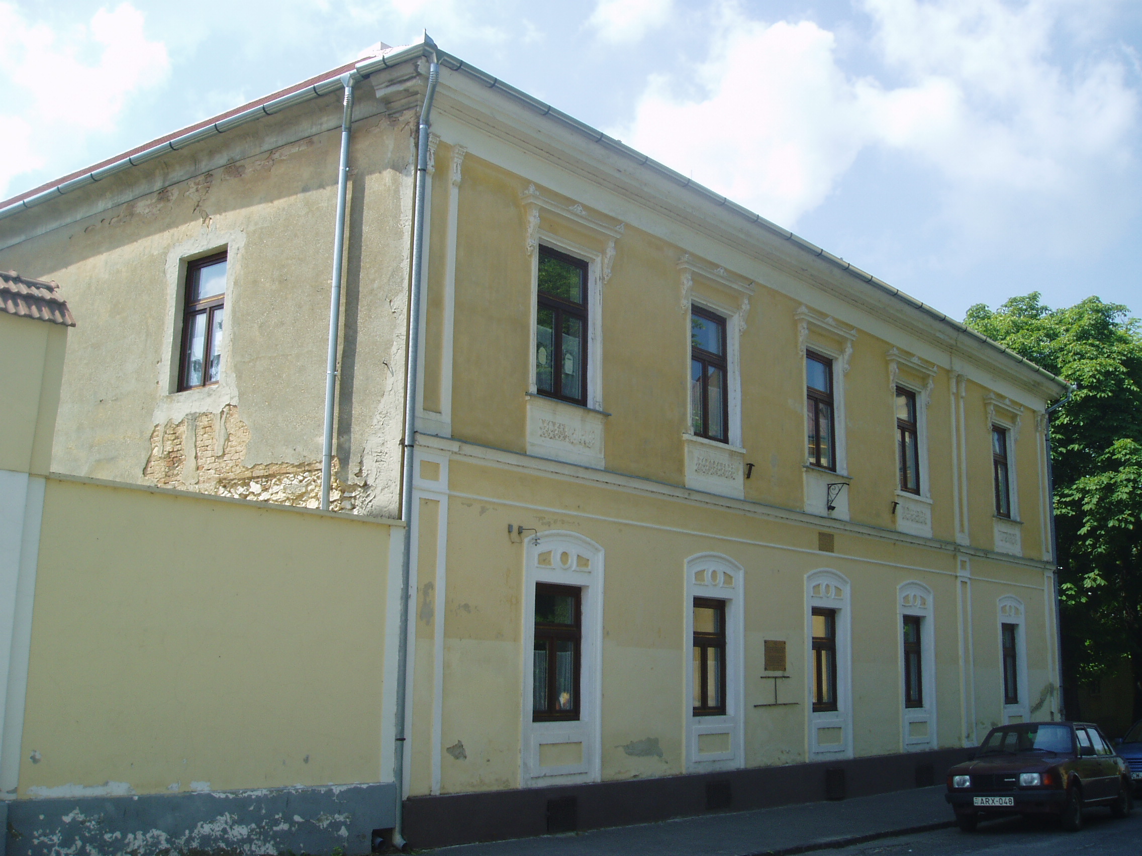 Nyilvános 1062 | 1837 | Sümeg, Ramassetter utca 10. | A Ramasetter utca házai jórészt a XVII. század második felében épültek, bár a legtöbbet később átalakították. A 10. számú épület is barokk stílusú, földszintes ház volt eredetileg, amelyre később emeletet építettek, s homlokzatát eklektikus stílusban átalakították. Az épület homlokzatán olvasható emléktábla szerint ebben a házban élt és halt meg Ramassetter Vince, "Sümeg atyja". Ramassetter Vincének a városban egészalakos szobra (lásd: Sümeg, Kossuth u. 13.) és több emléktáblája is látható, köztük a közelben álló szülőházán is (lásd: Sümeg, Deák F. u. 6.). A város jótevője a helyi köztemetőben nyugszik (lásd: Sümeg, Temető: Ramassetter Vince sírja). A fénykép 2007 júniusában készült. Felh. irod.: Koppány Tibor - Kozák Károly: Sümeg útikalauz. Veszprém, Idegenforgalmi Hivatal, 1965 Veszprém megyei életrajzi lexikon. Veszprém, Veszprém Megyei Önkormányzat Közgyűlése, 1998 www.ekmk.hu/emlekhely/Emlekhelyek.html |