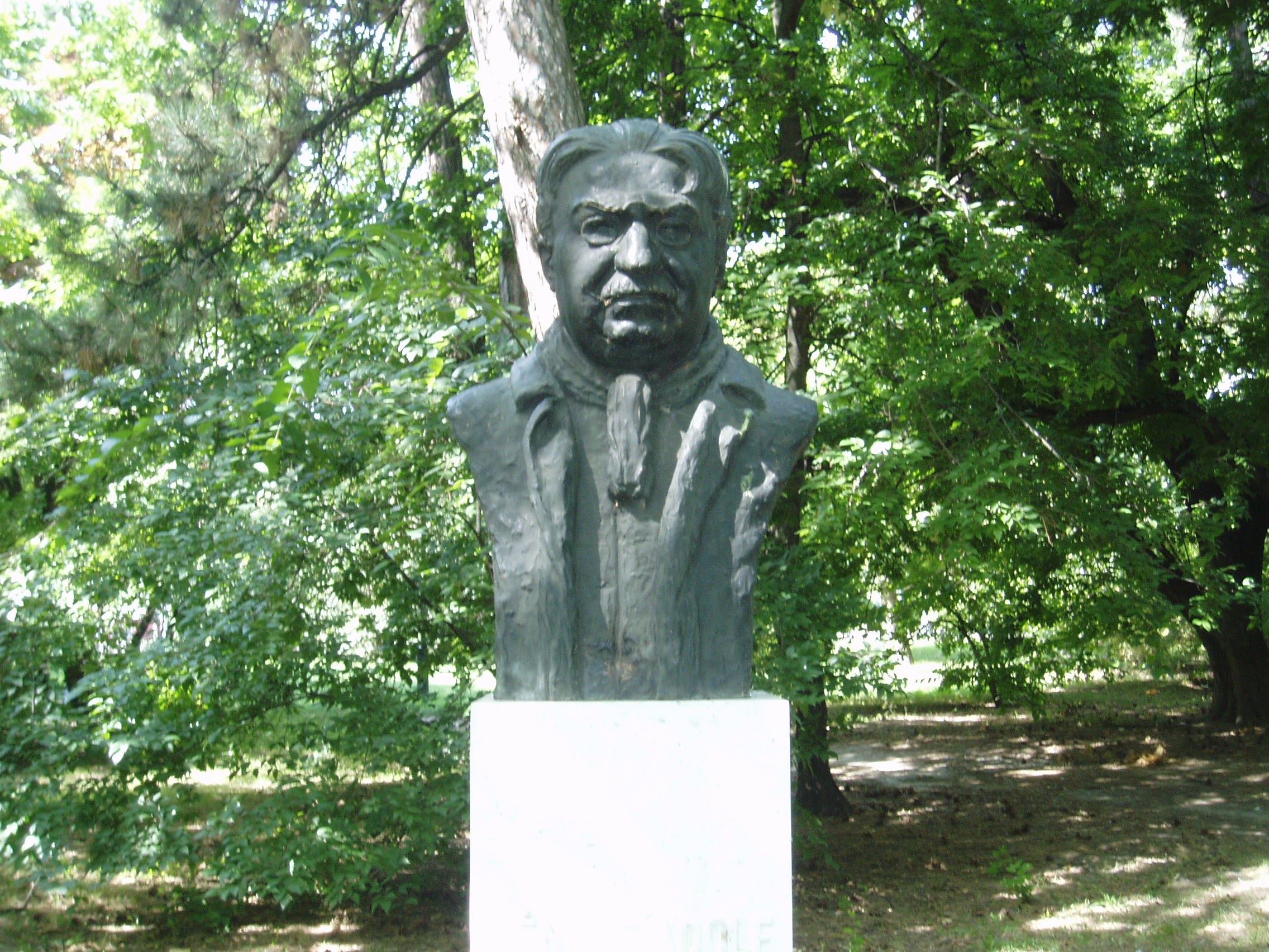 Nyilvános 1057 | 1624 | Kecskemét, Katona József park: Fényes Adolf szobra | A Vasútállomás közelében levő parkban alakították ki Kecskemét panteonját. Fényes Adolf (1867-1945) kecskeméti születésű festőművész szobra Petri Lajos alkotása. A fénykép 2006 augusztusában készült. Felh. irod.: Heltai Nándor: Kecskemét. Kecskeméti Lapok, 1998 |