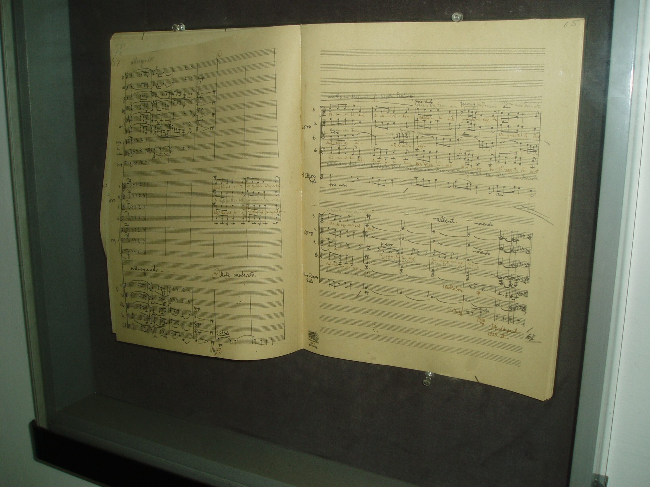 Nyilvános 1083 | 1630 | Kecskemét, Kéttemplomköz 1. Kodály Intézet | A kecskeméti születésű Kodály Zoltán zenepedagógiai törekvéseit és nevelési rendszerét az egész világra kisugárzó Kodály Zoltán Zenepdagógiai Intézet otthona középkori épületrészek és alapfalak felhasználásával ferences kolostornak épült 1702–1736 között. Az épületet Kerényi József tervei szerint 1975-ben alakították át az újonnan alapított Kodály Intézet céljaira. A ragyogó átalakítás az új intézmény igényeit és a műemléki környezet minél teljesebb megóvását egyaránt figyelembe vette. Az 1980-as évek elején — ugyancsak Kerényi József tervei alapján — új szárnnyal bővítették, amely irodáknak, tantermeknek, a zenei szakkönyvtárnak és az audiovizuális stúdiónak ad helyet. Mint az intézmény honlapján is olvasható, a Kodály Intézet a magyar zenepedagógia világszerte ismert és elismert műhelye. Kodály zenei nevelési koncepciójának elméleti és gyakorlati oktatására továbbképzéseket szervez magyar zenetanárok, valamint éves tanfolyamokat külföldi szakemberek számára. A földszinti folyosókon a nagyközönség számára is látogatható állandó Kodály–kiállítást rendeztek, amelyet alkalmankét időszaki tárlatok egészítenek ki. A képen a kiállítás egyik kincse, a Psalmus Hungaricus kéziratos partitúrája látható. A kolostor egykori refektóriuma ma kiváló akusztikájú hangversenyterem. A kerengő által közrefogott belső udvaron is gyakran rendeznek nyári koncerteket. A fénykép 2006 augusztusában készült. Felh. irod.: Heltai Nándor: Kecskemét. Kecskeméti Lapok, 1998 www.kodály-inst.hu |