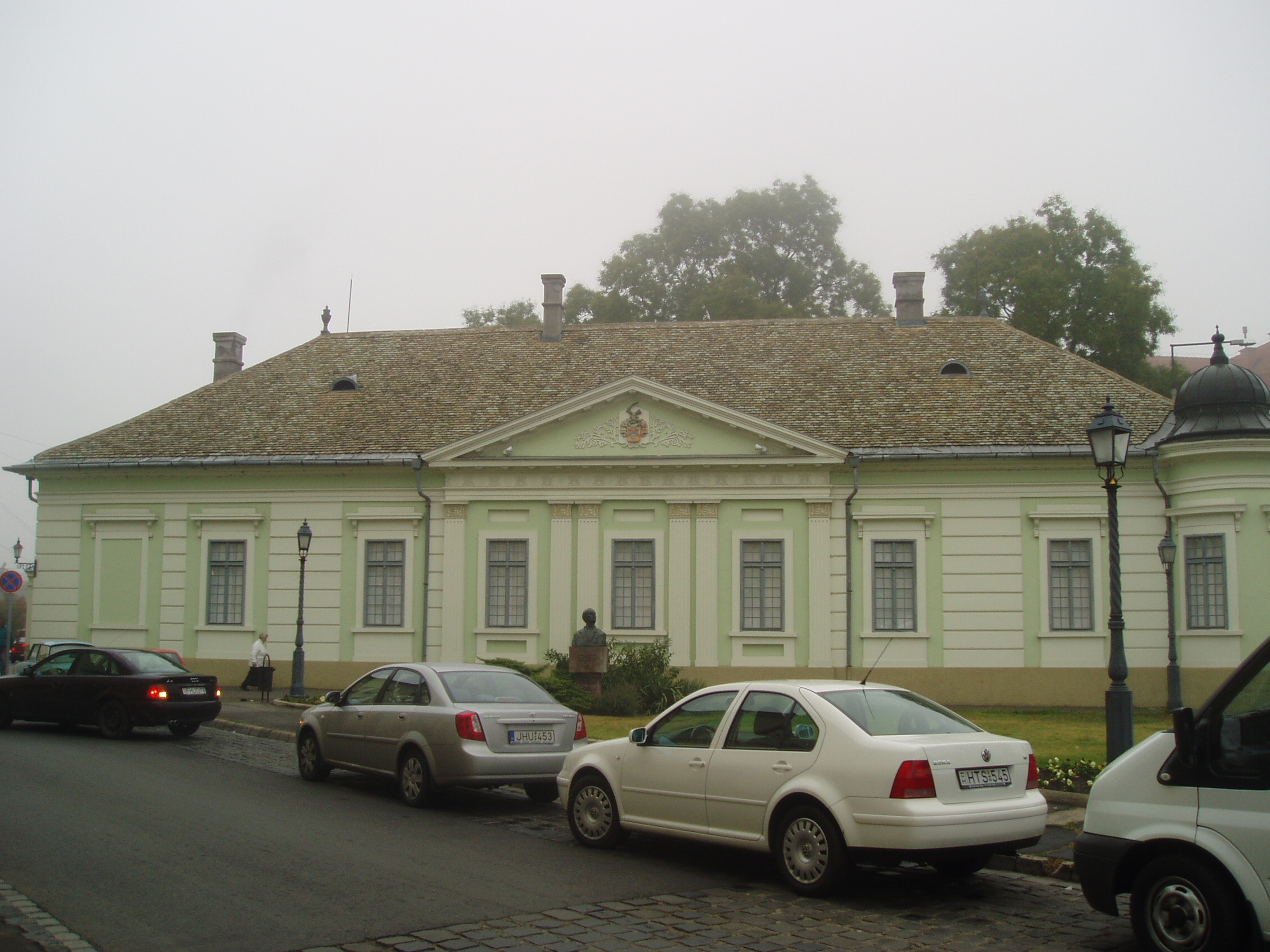 Nyilvános 1387 | 3312 | Baja, Arany János utca 1. | Az egykori Vojnich-kúria 1820 körül épült klasszicista stílusban. 1946 és 1953 között ez az épület adott otthont a Rudnay Gyulának és az általa vezetett művésztelepnek. A kúria ma a Nagy István Baján élt (lásd: Baja, Nagy István u. 8.) festőről elnevezett képtár otthona. A XX. századi modern magyar képzőművészet reprezentánsait bemutató gyűjteményben külön egységet képeznek az ő alkotásai. A kiállítás másik nagy gyűjteménye Rudnay Gyula festőművész munkásságát, bajai iskolateremtő tevékenységét mutatja be. Itt látható az Oltványi Imre műgyűjtő által a múzeumnak adományozott modern képzőművészeti anyag is. A fénykép 2007 októberében készült. Felh. irod.: Látnivalók Bács-Kiskun megyében. Miskolc, Well-PRess, 2002 |