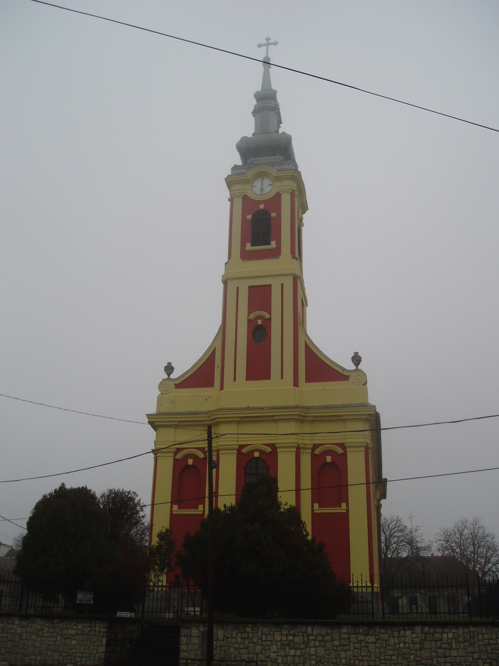 Nyilvános 1114 | 2046 | Baja, Táncsics utca 21. Szent Miklós görögkeleti plébániatemplom | A bajai szerbek három templomából kettő maradt fenn. Közülük ez az épület, a Szent Miklós tiszteletére emelt templom a régebbi (a másik templomot lásd: Baja, Batthyány u. 9.). Mai, későbarokk stílusát az 1779-ben történt átalakítása során nyerte el. Homlokzati tornyán copf füzérdísz és díszes jón pillérek láthatók. Eredeti berendezéséből fennmaradt az ikonosztáz, a püspöki trónus és A. Teodorovity belgrádi ikonfestő 1793-ban készült festményei. A fénykép 2007 októberében készült. Felh. irod.: Látnivalók Bács-Kiskun megyében. Miskolc, Well-PRess, 2002 |