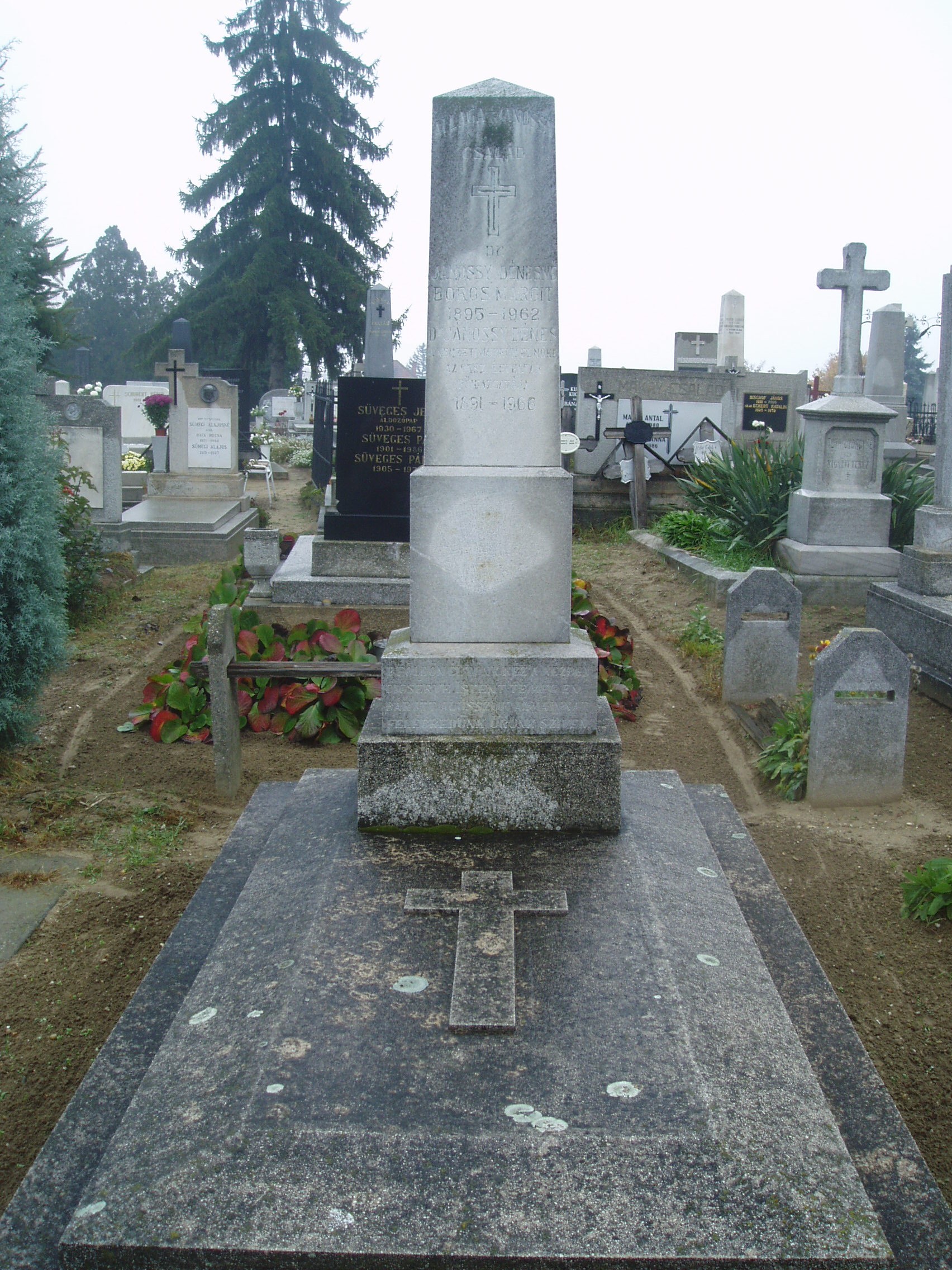 Nyilvános 1067 | 1862 | Baja, Rókus utca: Rókus temető - Allaga Géza sírja | A temetőkápolna közelében van Allaga Géza zeneszerző, karmester, cimbalomművész sírja. Az 1841-ben Óbecsén született zenész kisgyermek korában költözött szüleivel Bajára. Itt járt gimnáziumba, s kezdett zenével foglalkozni. A bécsi zeneakadémián végzett tanulmányai után színházaknál dolgozott, népszínművekhez írt dalokat. 1870-től a bajai tanítóképzőben tanított, de hamarosan a fővárosba költözött, s a Nemzeti Színház, majd az Operaház zenekarának első gordonkásaként működött. 1880-tól kezdett el a cimbalommal foglalkozni olyan eredményesen, hogy felkeltette Liszt Ferenc figyelmét is, s a Nemzeti Zenedében cimbalom tanszéket létesítettek számára. Idős korában visszatért Bajára, egyik fivére házában élt. Családi problémák és gyógyíthatatlan betegsége miatt 1913 augusztusában öngyilkos lett. A fénykép 2007 októberében készült. Felh. irod.: Herencsár Viktória: Cimbalmos ősök nyomában I. Allaga Géza. Bp. szerzői kiadás, 2001 Gál Zoltán : A cimbalom atyjának nevezték. = w.bacskaisport.hu |