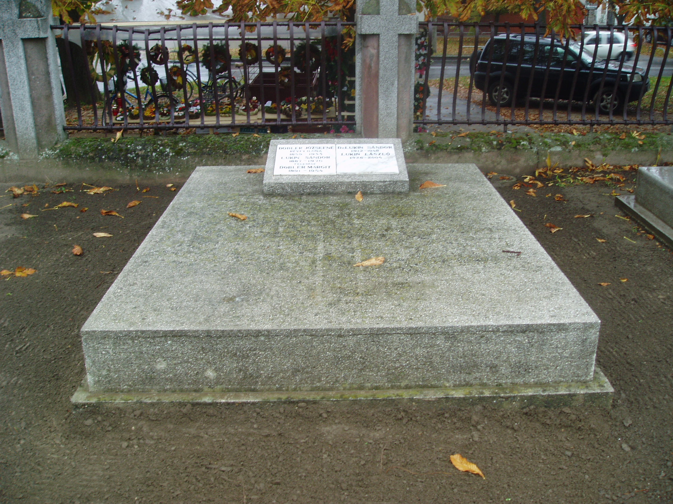 Nyilvános 1083 | 2082 | Baja, Rókus utca: Rókus temető - Lukin László sírja | A Rókus temetőben nyugszik a bajai születésű legendás pedagógus, karmester, egyházzenész Lukin László. 2004. augusztus 18-án, életének 79. évében hunyt el. 1950-től nyugdíjazásáig a fővárosi Fazekas Mihály Gimnáziumban tanított, s mellette személyesen és a televízión keresztül több nemzedéket nevelt zenehallgatásra, zeneszeretetre. Baja díszpolgárának nevét szülővárosában ma általános iskola viseli. Emléktáblát a helyi Liszt Ferenc Zeneiskolában avattak tiszteletére. A fénykép 2007 októberében készült. |