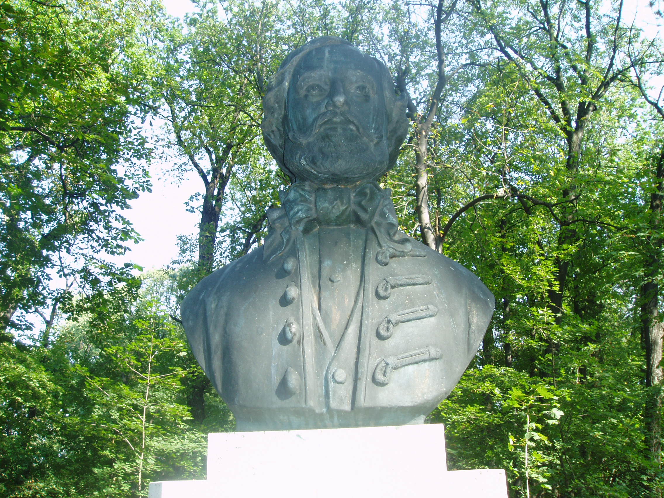 Nyilvános 1370 | 3155 | Sárospatak, Iskolakert: Egressy Béni szobra | A Református Kollégium (lásd: Sárospatak, Rákóczi u. 1.) bejáratával szemben találjuk az Iskolakertnek nevezett parkot. Az 1980-as években természetvédelmi területté nyilvánított Iskolakert sajátos nemzeti érték, mely egyedülálló az országban. Sétányai mentén Patakhoz kötődő jeles személyiségek szobrai állnak. A képen Egressy Béni bronz mellszobra látható. Kelemen Kristóf alkotását 1989-ben, a Szózat zeneszerzője születésének 175. évfordulója alkalmából avatták fel. Talapzatán hangjegyekkel és szöveggel a Szózat első két sora látható. Egressy Béni 1828–1831 között volt a kollégium diákja. Szobrának felállítását Béres Ferenc (1922–1996) énekművész kezdeményezte; ma már az ő szobra is az Iskolakertben áll, ugyanezen az oldalon. A fénykép 2007 augusztusában készült. Felh. irod.: Látnivalók Borsod-Abaúj-Zemplén megyében. Miskolc, Well-PRess, 1995 www.sarospatak.hu/nevezetessegek |