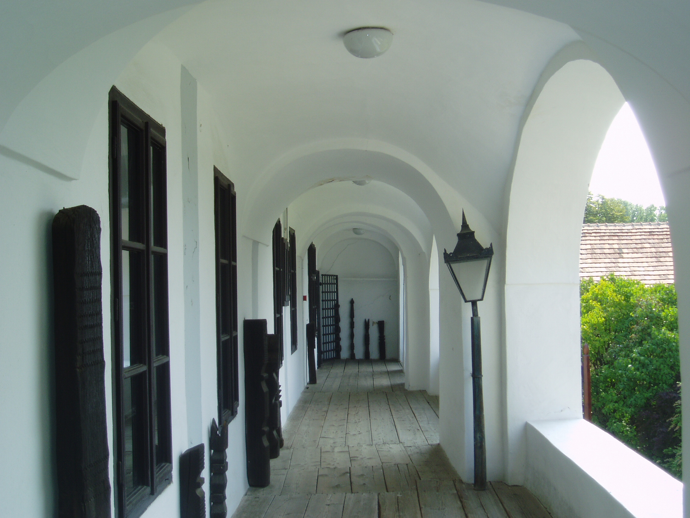 Nyilvános 1020 | 1540 | Sárospatak, Rákóczi utca 1. Református Kollégium | A Kollégium főépületének szárnyai által határolt tágas udvarban áll a régi iskolaépületek utolsó maradványa, az ún. Berna-sor. 1771/72-ben a fizika oktatása számára és a fizikaprofesszor lakásául épült. Az egyemeletes, hosszú szárny déli oldalát később kétszintes, árkádos tornáccal bővítették, feljáróval a nyugati oldalon. Az épület a korabeli provinciális magyar építészet szép példája. Az emelet boltozott termeiben a kollégium történetét bemutató kiállítás látható. A fénykép 2007 augusztusában készült. Felh. irod.: Détsy Mihály: Sárospatak. Bp. Corvina, 1974 |