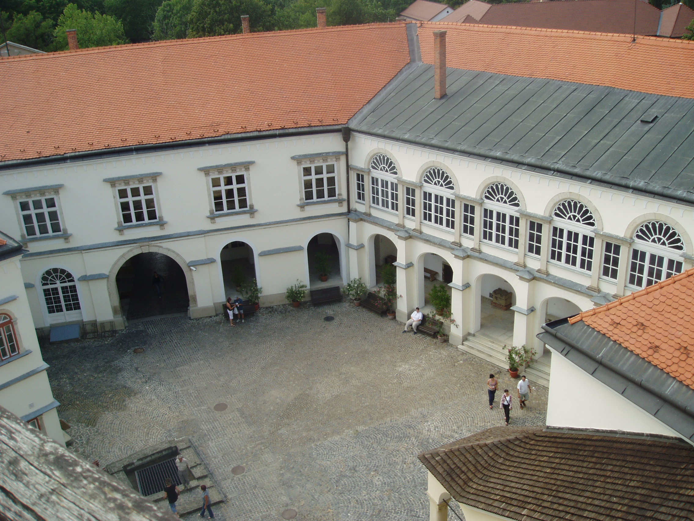 Nyilvános 1014 | 1481 | Sárospatak, Szent Erzsébet utca 19. Rákóczi-vár | A Vörös-torony legfelső szintjéről gyönyörű kilátás nyílik a külső várra, a városra, és az azt körülvevő változatos tájra. De szép lelátás kínálkozik a várkastély tarka tetőire, a várudvarra, az azt övező homlokzatokra és az árkádos loggiára is. A fénykép 2007 augusztusában készült. Felh. irod.: Détsy Mihály: Sárospatak. Bp. Corvina, 1974 Látnivalók Borsod-Abaúj-Zemplén megyében. Miskolc, Well-PRess, 1995 www.sarospatak.hu/nevezetessegek |
