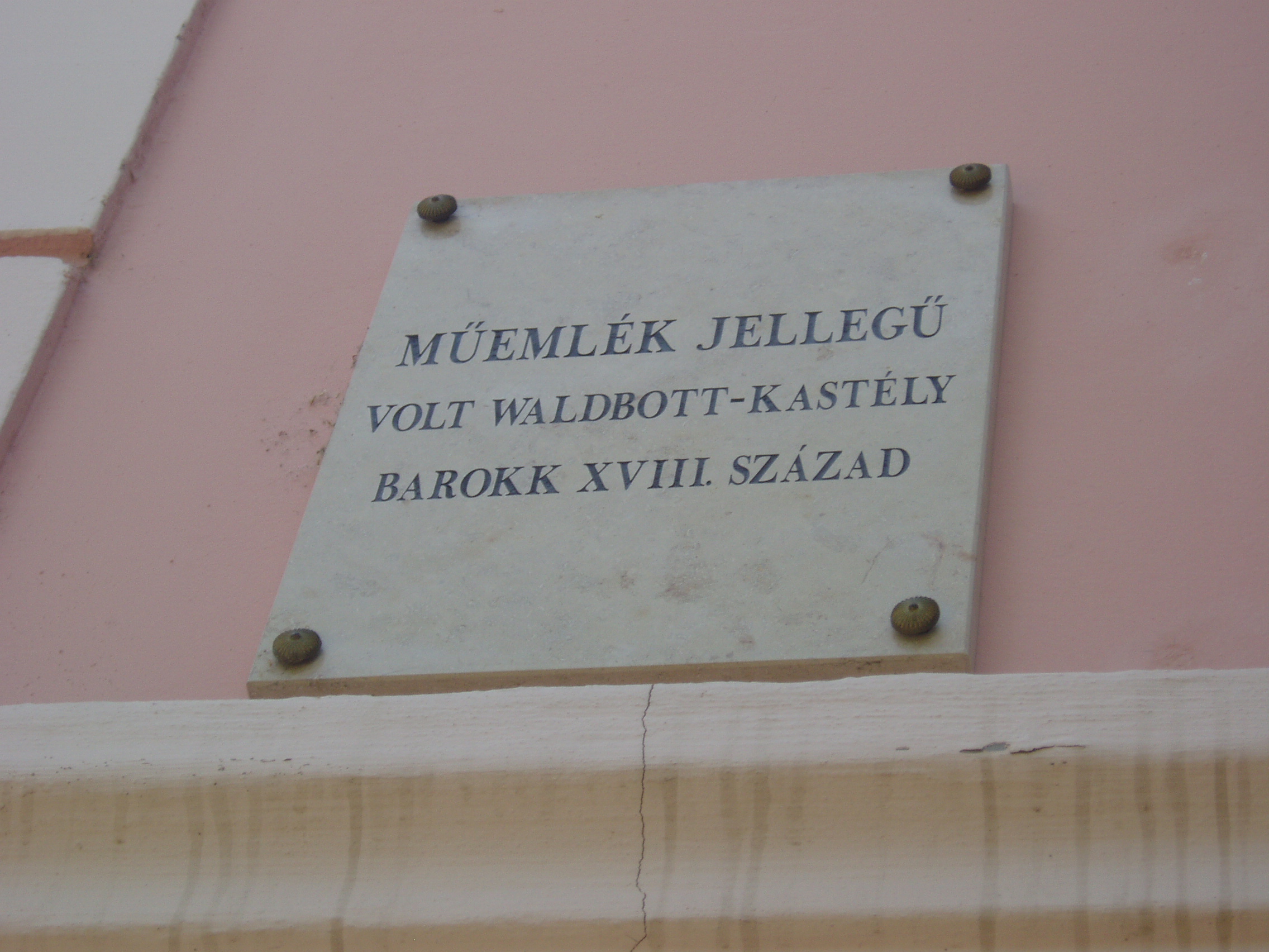 Nyilvános 1010 | 1455 | Sátoraljaújhely, Széchenyi tér 10. Waldbott-kastély | A XVIII. században épült, barokk stílusban. Szirmay Antal építtette, majd a XIX. század második felében a báró Waldbott család tulajdonába került. Domboldalban épült, így az utcai hosszanti homlokzati oldalon kétszintes, míg a kerti nyugati oldalon földszintes. Az utca vonalán szabadon álló, téglalap alaprajzú, mandzárdtetős, háromablakos középrizalittal. A főhomlokzaton tagozott osztópárkány, díszes főpárkány. Az alagsori négyzetes ablakok kőkeretelésűek, a felső ablakok mellvédje ugyancsak kőből készült, míg a többi részen vakolatból alakították ki a kereteket. Az alsó szint dongaboltozatát e század elején átépítették, porosz-süvegboltozatra. A lakószinten a szobák teknőboltozatosak, a középrizalit mögötti nagyteremben ma már síkfödém van, párkánnyal. A nagyteremben lemázolt kőkeretes kandalló áll. Említésre méltó régi védett kerítése. Az épületben jelenleg idősek napközi otthona működik. A fénykép 2007 augusztusában készült. Felh. irod.: www.satoraljaujhely.hu/nevezetessegek |
