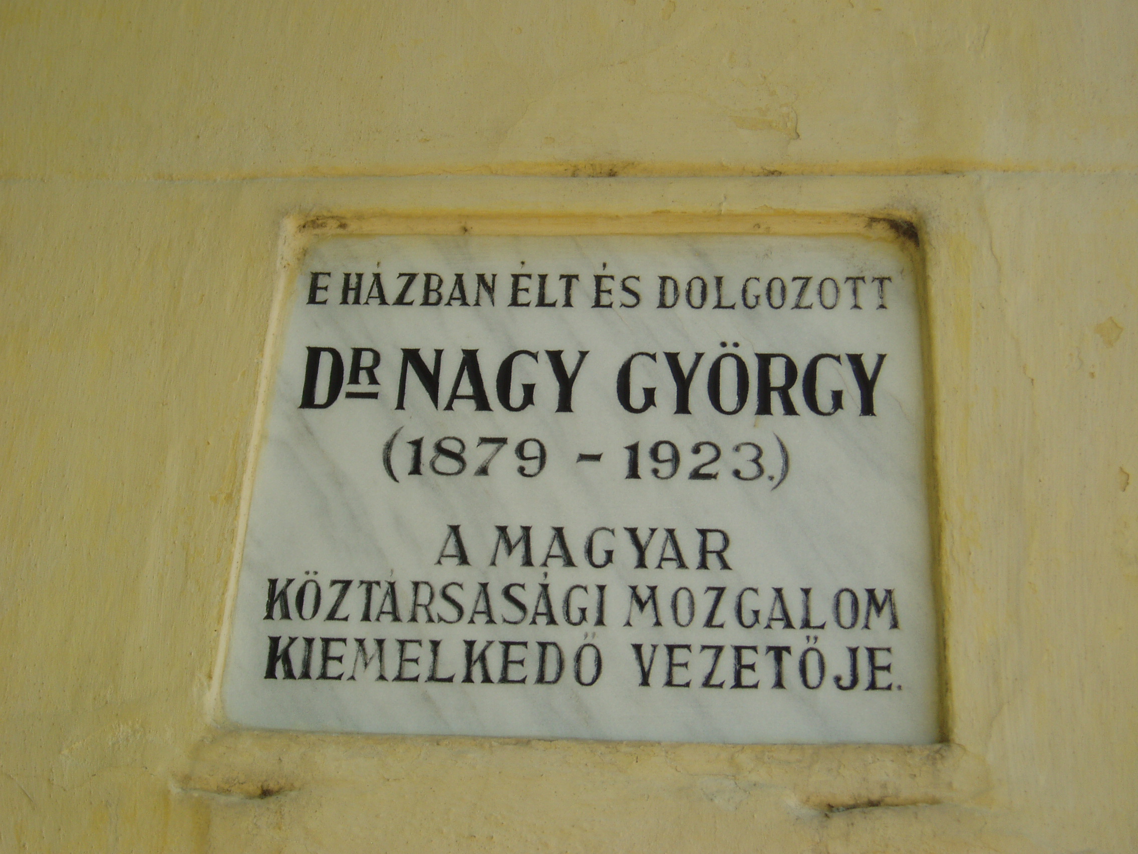 Nyilvános 1057 | 1589 | Hódmezővásárhely, Szántó Kovács János utca 28. | Ebben a házban lakott az 1930-as évek elején Makai Ödön, József Attila gyámja és sógora. Lakásukban többször megfordult a fiatal költő: 1934-ben itt dolgozott válogatott versein, amelyek Medvetánc címen jelentek meg. Makaiék később átköltöztek a város villanegyedébe (lásd: Hódmezővásárhely, Ady u. 4.). Az épületen József Attila és Nagy György emléktáblája olvasható. Nagy György (1879-1923) erdélyi születésű ügyvéd, politikus 1910-ben költözött Hódmezővásárhelyre, ahol ügyvédi irodát nyitott. 1910 és 1913 között lakott ebben a házban. Itt szerkesztette és adta ki Magyar Köztársaság című politikai folyóiratát. Az 1912-ben Budapesten megalakult Országos Köztársasági Párt elnökeként 1918. november 16-án az Országházban ő olvasta fel a köztársaság kikiáltásáról szóló határozatot. Emlékét utca, utcanévtábla, a gimnáziumban dombormű őrzi. Emlékszobája a Levéltárban (Bajcsy-Zsilinszky u. 23.) tekinthető meg. Díszsírhelyét 1988-ban avatták fel a Kincses temetőben. 1991-ben a város posztomusz díszpolgárává választotta. A fénykép 2007 júliusában készült. Felh. irod.: Barangolások Csongrád megyében. Miskolc, Well-PRess, 1997 /Vendégváró/ Arató László - Batyi Zoltán: Hódmezővásárhely az alföldi művészváros. Hódmezővásárhely, 2004 www.hodmezovasarhely.hu |