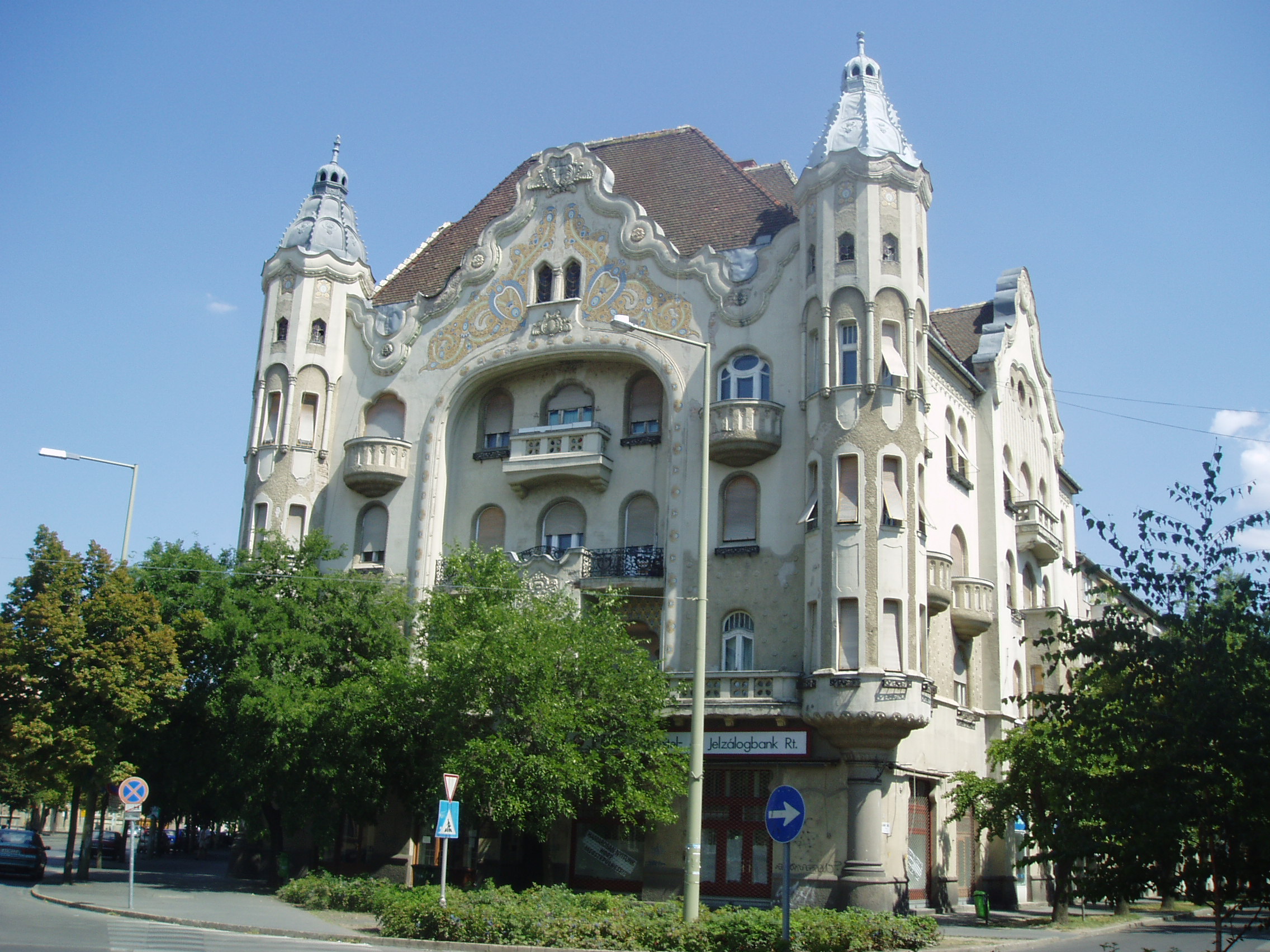 Nyilvános 1041 | 1578 | Szeged, Tisza Lajos körút 20. | A kiskörútnak is nevezett Tisza Lajos körút egyik legszebb és legérdekesebb épülete a monumentális, szecessziós stílusú Gróf-palota. Névadója az építettő dr. Gróf Árpád Márton városi főügyész, kormányfőtanácsos, aki magas lakbéreket is megfizetni tudó, jól szituált családok számára szánta bérházát. Az épületet Raichl J. Ferenc tervezte, s 1912-13 között, mindössze 13 hónap alatt épült fel. A három utca által határolt telken álló háromemeletes városi palota megformálásában az építész jól ötvözte a modern szecessziós törekvéseket a hagyományokban bővelkedő magyaros és keleti ornamentikával. A fénykép 2007 júliusában készült. Felh. irod.: Péter László: Szeged. Bp. Panoráma, 1981 http://magyar.szegedhotels.com/utikonyv_szeged_varosa.php |