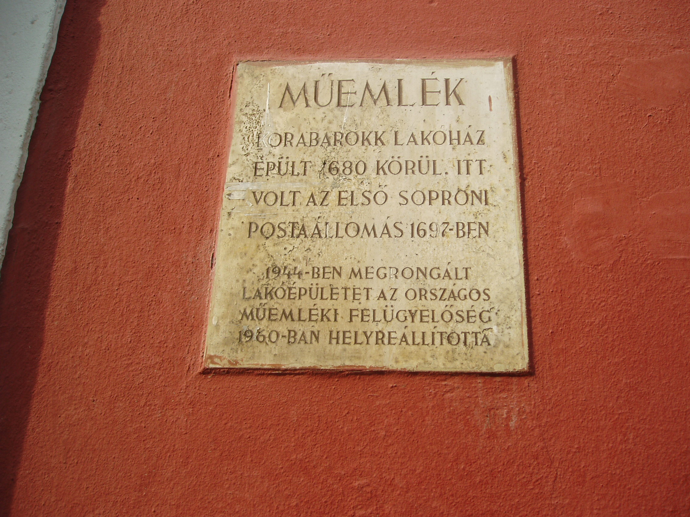 Nyilvános 1025 | 1509 | Sopron, Fegyvertár utca 23. | A belvárosban, a Templom utca 21. szám után balra nyílik a rövid Fegyvertár utca. A 23. számú, 1680 körül korabarokk stílusban épült ház várostörténeti jelentősége, hogy 1697-ben itt volt az első postaállomás. A fénykép 2008 júniusában készült. Felh. irod.: Czellár Katalin: Sopron. 3. jav. kiad. Bp. Panoráma, 2000 |