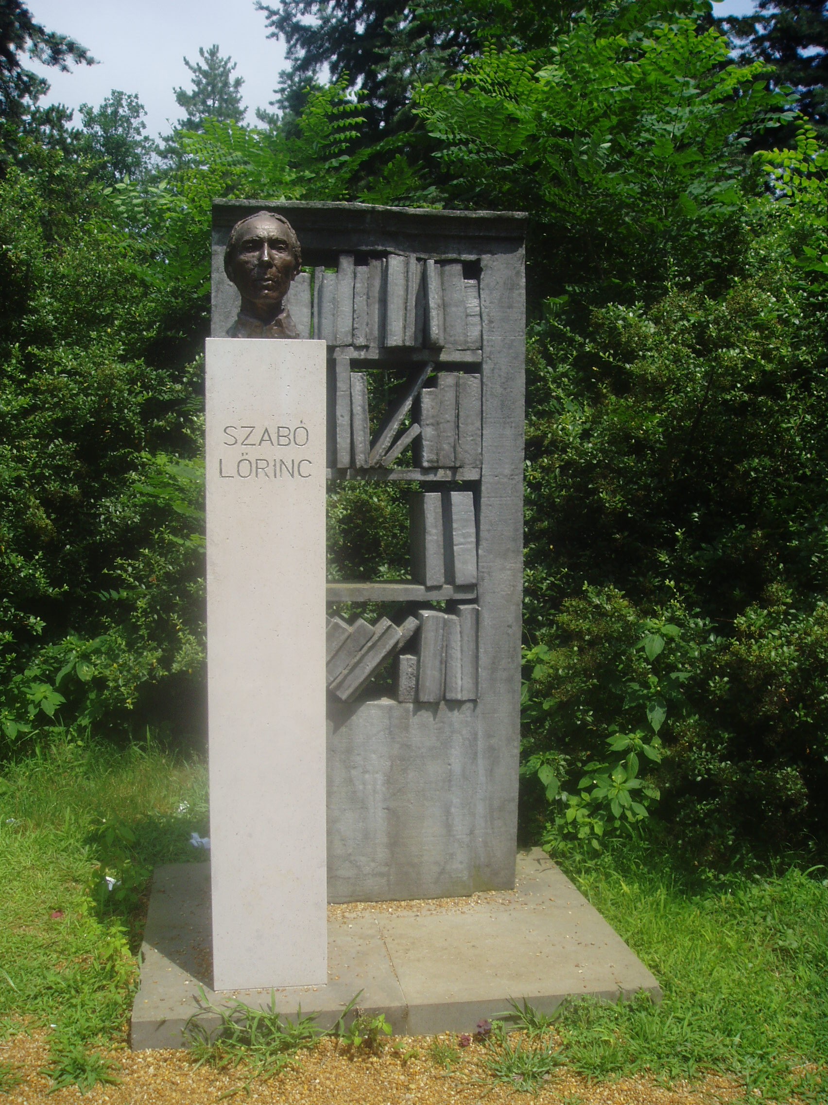 Nyilvános 1126 | 3247 | Debrecen, Medgyessy sétány: Szabó Lőrinc szobra | A debreceni Nagyerdő területén a városhoz kötődő jeles személyiségek szobrai állnak. Szabó Lőrinc szobra Schaár Erzsébet alkotása. A fénykép 2006 júniusában készült. |