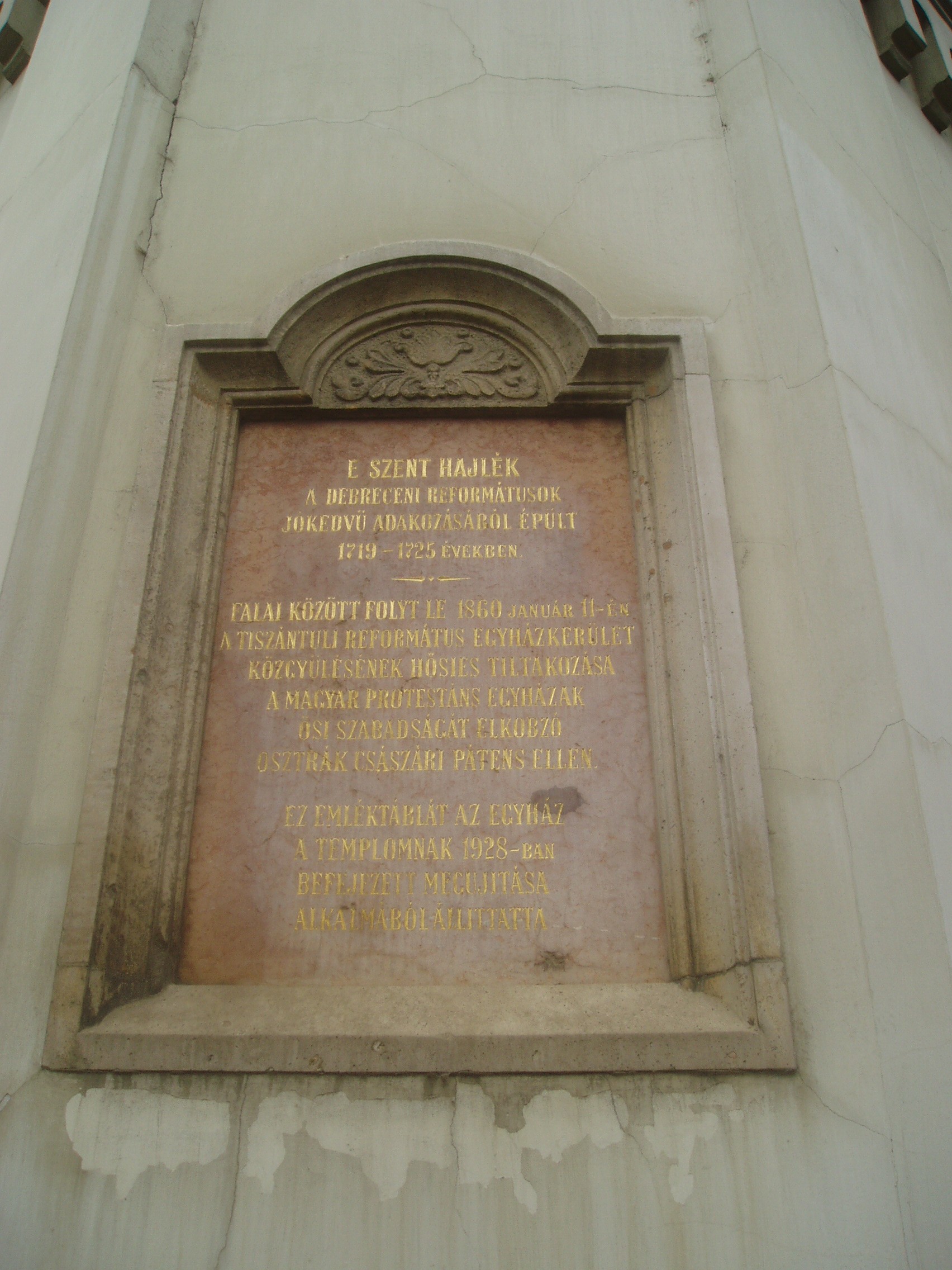 Nyilvános 1140 | 2196 | Debrecen, Révész tér: Kistemplom | Debrecen városközpontjában, a Piac utca és a Révész tér sarkán áll a nagy múltú épület. Az utca mai szintjénél kissé lejjebb épült templomhoz magas, bástyafok koronájú torony csatlakozik. A Kistemplom Debrecen legöregebb egyházi épülete. Helyén már a XV. században imaház állott, melynek 1719-es leégése után, közadakozásból építették meg két év alatt a ma is itt álló épületet. Mai formáját többszöri átépítés után 1876-ban kapta. Tornyát eredetileg barokk hagymasisak koronázta, amely 1907-ben egy szélvihar áldozata lett. Ekkor látták el a bástyás pártázattal, amelyről azóta Csonkatemplomnak is nevezik. A templom belső kiképzése - csakúgy, mint külső megjelenése - puritán egyszerűségű. A berendezési tárgyak közül figyelemreméltó az 1790-ben készült katedra. A középső bejárat mellett emléktábla idézi az 1860-as év emlékét, amikor a református egyházak hatszáz küldötte tiltakozott itt ünnepélyesen a Habsburg-abszolutizmus egyik jogsértő intézkedése ellen, amely eltörölte a protestáns egyházak önkormányzatát. A császári pátens elleni tiltakozó gyűlést a császásri helytartó ugyan betiltotta, de a küldöttek mégis összeültek. A helytartó a helyszínen megjelenve próbálta megakadályozni a tanácskozást: "A gyűlést őfelsége, a császár nevében megtiltom!" Ekkor felemelkedett Debrecen püspöke, s a következőket mondta: "A gyűlést őfelsége, az Isten nevében megnyitom!" A protestáns küldöttek egyöntetű és határozott fellépésének hatására a kormány arra kényszerült, hogy visszavonja alkotmánysértő rendeletét. Felh. irod.: Papp Antal: Debrecen. Bp. Panoráma, 1976 www.debrecen.hu |