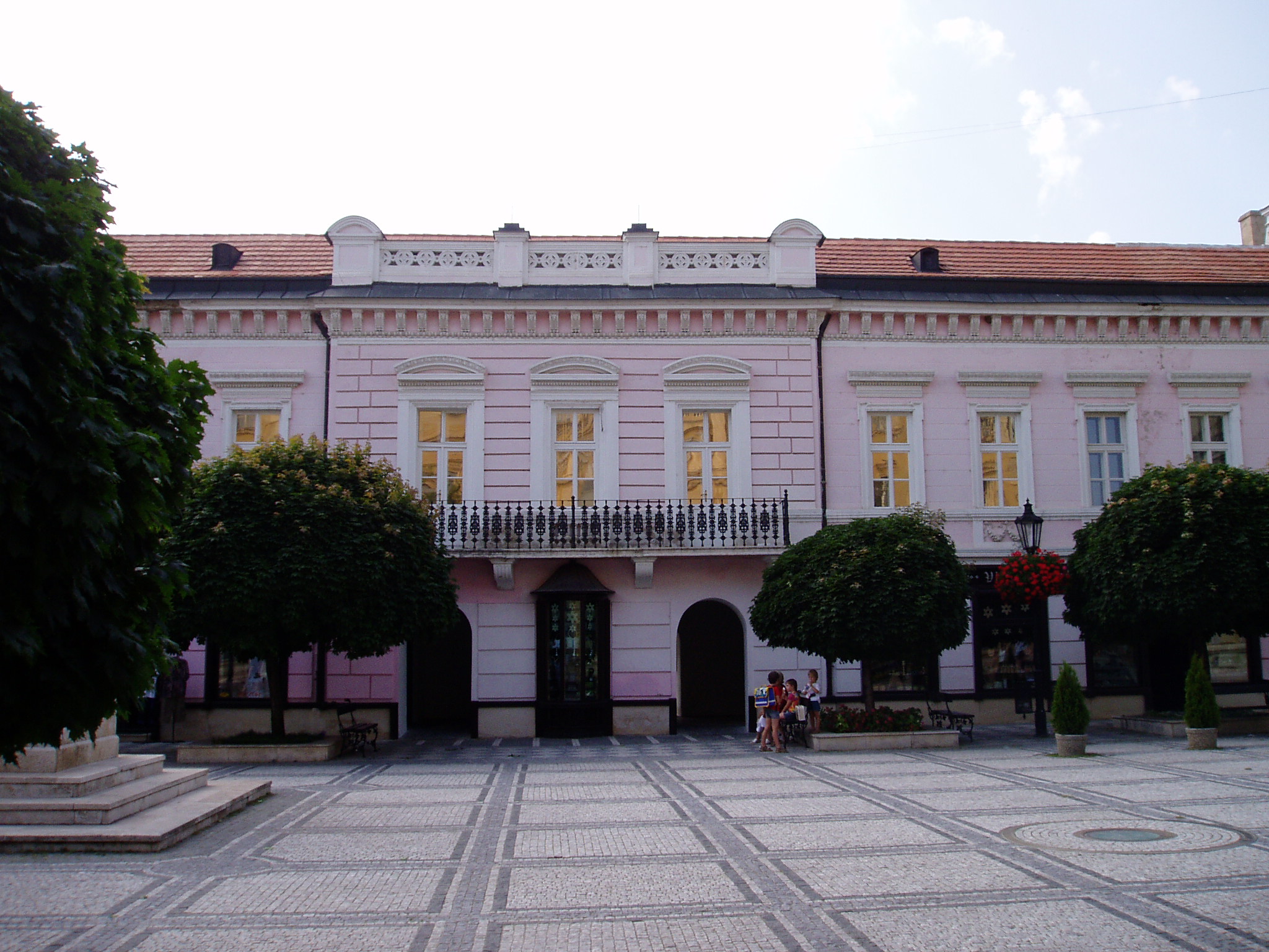 Nyilvános 1154 | 5227 | Komárom (Komárno). Klapka tér 9. Zichy-palota | A Klapka tér legnagyobb épülete a volt Zichy–palota. Zichy Miklós gróf, szabolcsi főispán építtette a XVII. század második felében. Eredetileg barokk stílusú volt, de miután a 1763-as nagy komáromi földrengés romba döntötte, klasszicista stílusban épült újjá, két épületszárnnyal bővülve. Udvarának végén az 1800-as évek elejétől 1827-ig emeletes épület állt, ennek emeleti részén tartották a táncmulatságokat és a színházi előadásokat. Az első hivatásos magyar színtársulat Komáromban Benke József és Kemény János vezetésével lépett fel 1811 májusában (ők a második pesti színtársulatból váltak ki). A társulatban ott volt Balogh István, Déry István, Láng Ádám, Murányi Zsigmond, Murányiné Lefèvre Teréz és a pályája legelején levő, tizennyolc éves Scheckenbach (Schenbach) Róza, aki később Déryné Széppataki Róza néven vált a magyar játékszín történetének állócsillagává. Legközelebb Balogh István székesfehérvári társulata jutott el Komáromba, valamikor 1813 és 1815 között. Szinnyei József szerint ennek a társulatnak Katona József is tagja volt, s Idegen művésznéven fellépett itt a Hamlet címszerepében és saját, Luca széke című darabjában. 1819 októberében Kilényi Dávid kecskeméti társulata érkezett a városba. Előadásaikról Ásvay Jókay József, Jókai Mór édesapja tudósított a helyi sajtóban. A közelmúltban a Zichy–palota udvarán építették ki az ún. Európa udvart. A helyi viszonylatban gigantikus méretű vállalkozás célja, hogy élőben mutassa be harmincöt európai ország építészetét. A városrész egyben Komárom új szolgáltató központja is, üzletekkel, éttermekkel, kávézókkal, valamint egy föld alatti bevásárlóközponttal. A palota első emeletén (bejárat a Szentháromság–szobor melletti kapun) a város két híres szülötte, Jókai Mór és Lehár Ferenc emlékkiállítása látható. Különösen a Jókai-kiállítás gazdag eredeti relikviákban. A fénykép 2005. júliusában készült. Felh.irod.: www.komarno.sk Mácza Mihály: Komárom nevezetességei. Pozsony, Madách-Posonium, 2002 Szénássy Zoltán: Rév–Komárom. KT Kiadó, 1998 Tóth László: "...miként hajdan az apostolok" : a komáromi magyar színjátszás története. Dunaszerdahely, Lilium Aurum, 1997 |