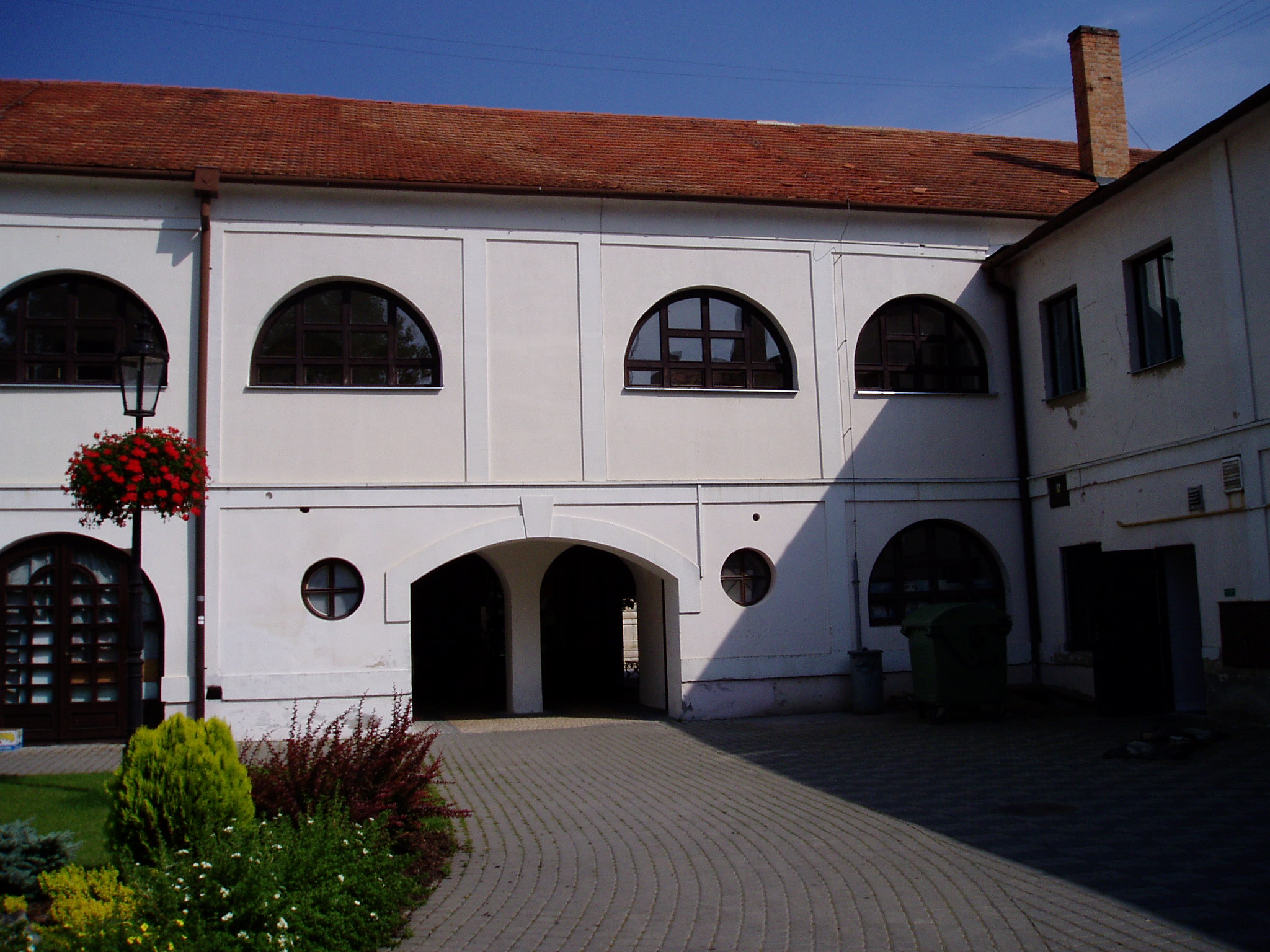 Nyilvános 1147 | 2238 | Komárom (Komárno). Klapka tér 9. Zichy-palota (udvari homlokzat) | A Klapka tér legnagyobb épülete a volt Zichy–palota. Zichy Miklós gróf, szabolcsi főispán építtette a XVII. század második felében. Eredetileg barokk stílusú volt, de miután a 1763-as nagy komáromi földrengés romba döntötte, klasszicista stílusban épült újjá, két épületszárnnyal bővülve. Udvarának végén az 1800-as évek elejétől 1827-ig emeletes épület állt, ennek emeleti részén tartották a táncmulatságokat és a színházi előadásokat. Az első hivatásos magyar színtársulat Komáromban Benke József és Kemény János vezetésével lépett fel 1811 májusában (ők a második pesti színtársulatból váltak ki). A társulatban ott volt Balogh István, Déry István, Láng Ádám, Murányi Zsigmond, Murányiné Lefèvre Teréz és a pályája legelején levő, tizennyolc éves Scheckenbach (Schenbach) Róza, aki később Déryné Széppataki Róza néven vált a magyar játékszín történetének állócsillagává. Legközelebb Balogh István székesfehérvári társulata jutott el Komáromba, valamikor 1813 és 1815 között. Szinnyei József szerint ennek a társulatnak Katona József is tagja volt, s Idegen művésznéven fellépett itt a Hamlet címszerepében és saját, Luca széke című darabjában. 1819 októberében Kilényi Dávid kecskeméti társulata érkezett a városba. Előadásaikról Ásvay Jókay József, Jókai Mór édesapja tudósított a helyi sajtóban. A közelmúltban a Zichy–palota udvarán építették ki az ún. Európa udvart. A helyi viszonylatban gigantikus méretű vállalkozás célja, hogy élőben mutassa be harmincöt európai ország építészetét. A városrész egyben Komárom új szolgáltató központja is, üzletekkel, éttermekkel, kávézókkal, valamint egy föld alatti bevásárlóközponttal. A palota első emeletén (bejárat a Szentháromság–szobor melletti kapun) a város két híres szülötte, Jókai Mór és Lehár Ferenc emlékkiállítása látható. Különösen a Jókai-kiállítás gazdag eredeti relikviákban. A fénykép 2005. júliusában készült. Felh.irod.: www.komarno.sk Mácza Mihály: Komárom nevezetességei. Pozsony, Madách-Posonium, 2002 Szénássy Zoltán: Rév–Komárom. KT Kiadó, 1998 Tóth László: "...miként hajdan az apostolok" : a komáromi magyar színjátszás története. Dunaszerdahely, Lilium Aurum, 1997 |