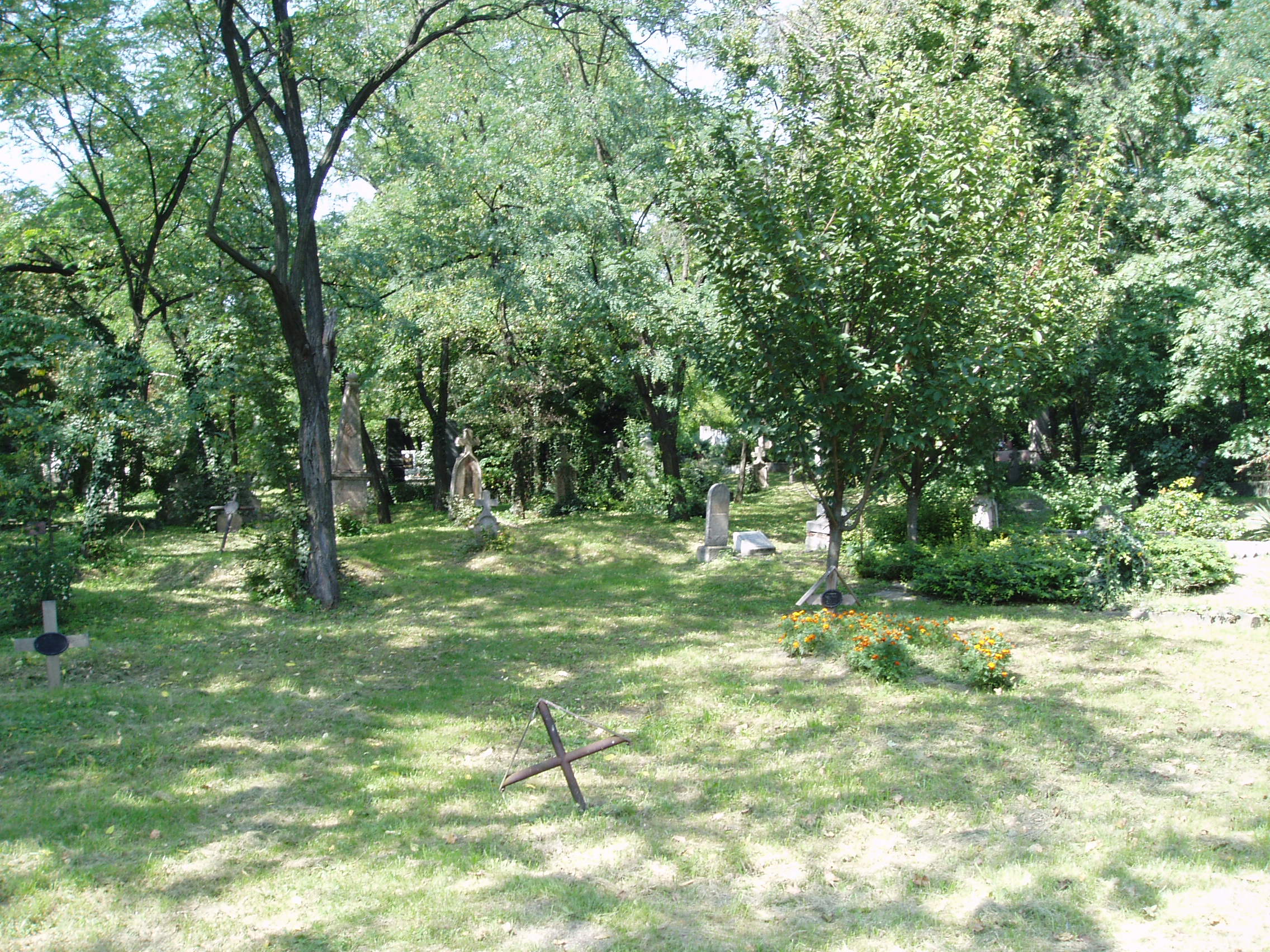Nyilvános 1122 | 2189 | Szentendre, Pátriárka utca: régi szerb temető | A Beográda-templom szomszédságában, a város szívében, magányos, csendes, s kissé elhanyagolt szigetként terül el a régi szerb temető. A fénykép 2005 szeptemberében készült. |