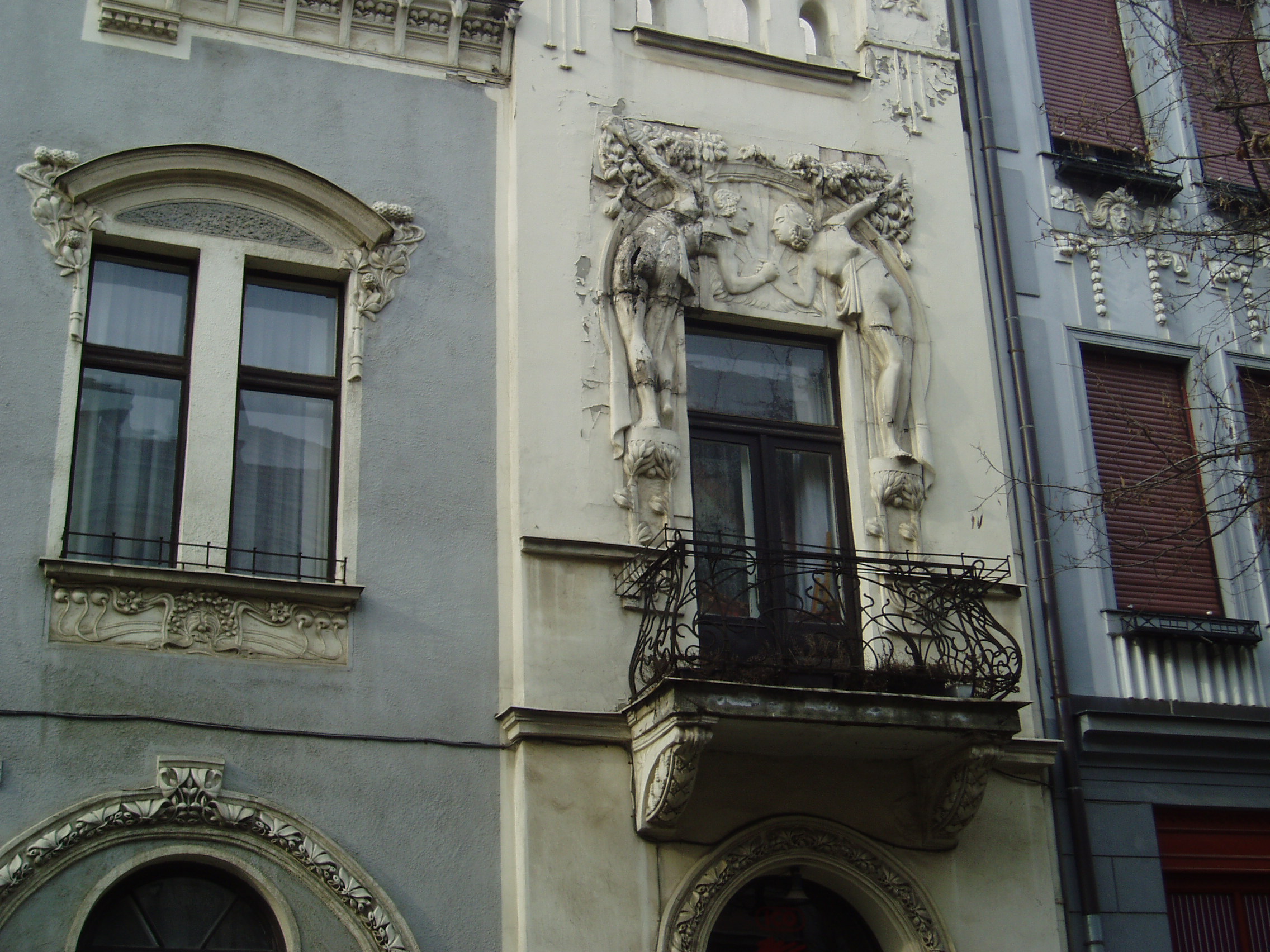 Nyilvános 1082 | 2393 | Kaposvár, Kontrássy utca 4. | Kontrássy Ferenc ügyvéd vagyonát a városra hagyva tette lehetővé a róla elnevezett utca megnyitását. A város legszebb szecessziós épületei találhatók itt. A 4. számú ház a magyar szecesszió kiemelkedő műve, 1912-ben épült. Homlokzatát Csikász Imre veszprémi szobrászművész készítette. A város lakói között annakidején nagy felháborodást keltett a meglehetősen hiányos öltözékű, Ádámot és Évát ábrázoló homlokzati díszítés... A fénykép 2006 márciusában készült. Felh. irod.: Kaposvár és környéke. Kaposvár, Infomark, 2002 Látnivalók Somogy megyében. Miskolc, Well-PRess, 2000 /Vendégváró/ |