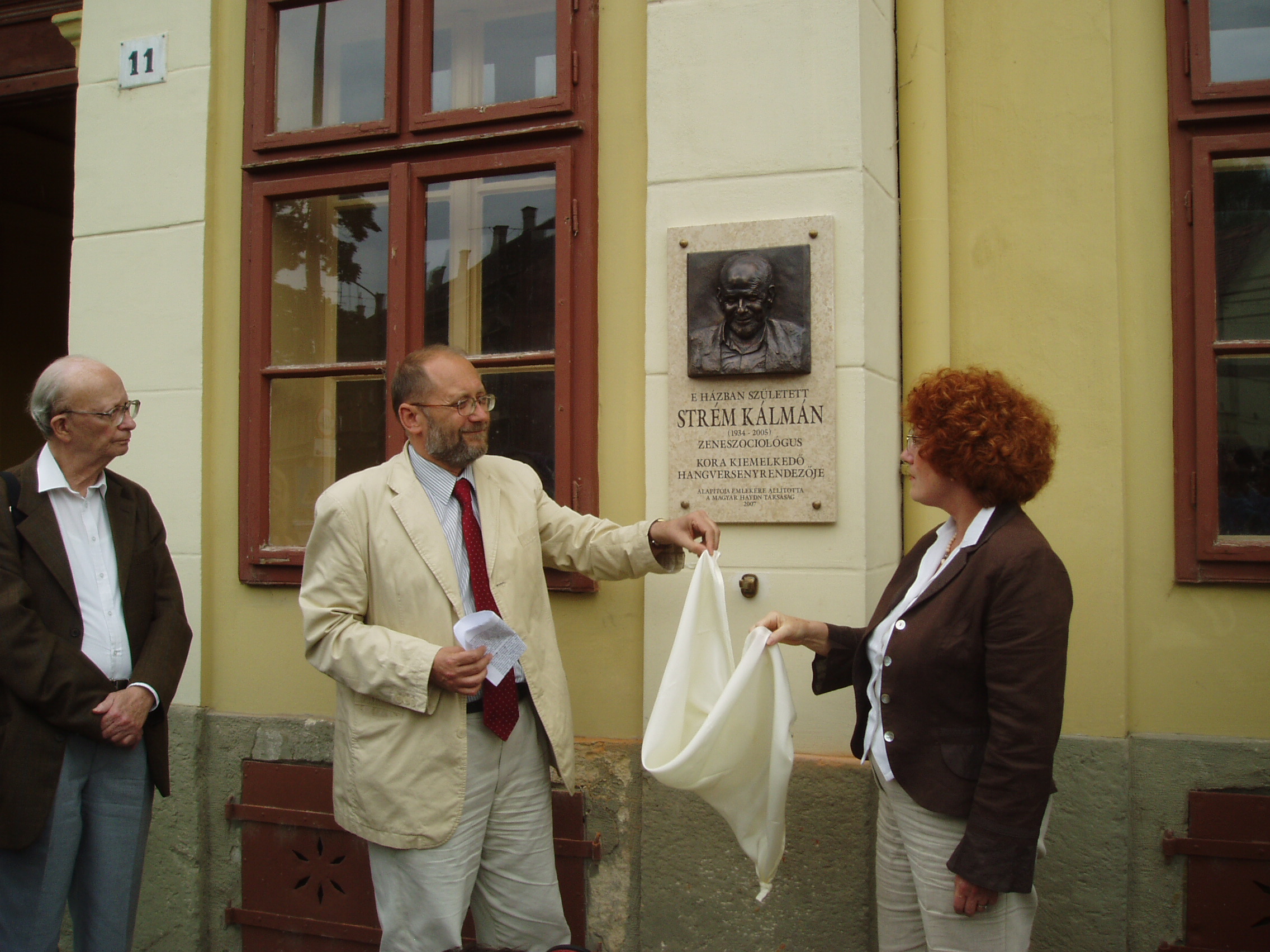 Nyilvános 2020 | 4818 | Strém Kálmán emléktáblájának felavatása 2007. május 28-án Nagykanizsán, Erzsébet tér 11. számú szülőházán. A táblát a Magyar Haydn Társaság állította, az eseményt a Kanizsai Klasszikusok Kulturális és Közhasznú Alapítvány rendezte. | A képen Földes Imre zenetörténész, Malina János zenetörténész, a Magyar Haydn Társaság elnöke és dr. Gerő Katalin, az emléktábla alkotója. Strém Kálmán (1934-2005) zeneszociológus, hangversenyrendező, a legjelentősebb hazai koncertrendező iroda vezetője 1934. május 23-án született Nagykanizsán az Erzsébet tér 11. számú épületben, az ún. Gutmann–palotában. Évtizedekig tevékenykedett az Országos Filharmóniánál, ahol a vidéki osztály vezetőjeként felbecsülhetetlen értékű munkát végzett. 1978-ban a Zeneművész Szövetség ügyvezető titkára lett, ezen a posztján húsz évig tevékenykedett. Közben olyan, a magyar zenei élet húsbavágó kérdéseiről publikált nagyhatású könyveket, mint a Hol vannak a magyar vonósok?, a Lemorzsolódás a zeneiskolákban és a Vitairat a magyar zenei művelődésről. A magyar zenei élet jobbítására közreadott javaslatai közül a — mára sajnos megszüntetett — zenei menedzserképzést ő indíthatta el a Zeneakadémián. A menedzselést nemcsak tanította, hanem a rendszerváltást követően maga is vállalkozni kezdett, s létrehozta a Strém Koncert Kft.-t, amely hamarosan a legnagyobb nem állami hangversenyrendező irodává vált. Strém Kálmán e minőségében is példamutató, áldozatos munkát végzett. Tevékenységének egyik fő iránya a magyarországi Haydn–kultusz erősítése volt: megszervezte és működtette a Fertőd–Eszterházai Nyári Fesztiválokat. Hangversenyrendezői munkájának másik pólusán a kortárs zene állott: ő hívta életre Balatonföldváron a Földvári Zenei Napokat, ahol igaz összművészeti kulturális műhelyt hozott létre (sajnos, mára ez a rendezvénysorozat is megszűnt). Hangversenyeit mindig a legnagyobb gondossággal, európai ízléssel rendezte meg. S bár ő maga nem volt muzsikus, de — mint egy tisztelője megfogalmazta — a hangversenyrendezést művészi fokon művelte. 2005. november 27-én bekövetkezett hirtelen halálával egy korszak zárult le a magyar zenei életben. Batta András, a Zeneakadémia rektora a következő szavakkal méltatta őt: "Olyan fajta ember volt, akiről azt hittük soha nem öregedik meg és nem fárad el. Élete volt a zene és a zene közvetítése. Évente százával szervezett, rendezett hangversenyeket, állt ki jó ügyek mellett, fedezett fel fiatal tehetségeket, adta meg a tiszteletet idős művészeknek." Halála óta már két emléktáblát avattak tiszteletére: Székesfehérváron a Szent István Művelődési Központban és a budapesti Liszt Ferenc Zeneművészeti Egyetemen. Most nagykanizsai szülőházára került fel emléktábla, emlékező beszédet Malina János zenetörténész, a Magyar Haydn Társaság elnöke tartotta. Az eseményt — természetesen — hangverseny is követte a Jézus Szíve templomban, amelyen Földes Imre tanár úr idézte fel Strém Kálmán alakját a közönség előtt. A hangversenyen közreműködtek: Horváth Anikó (csembaló), Kelemen Barnabás (hegedű), Kokas Katalin (hegedű és brácsa), Kokas Dóra (cselló). |