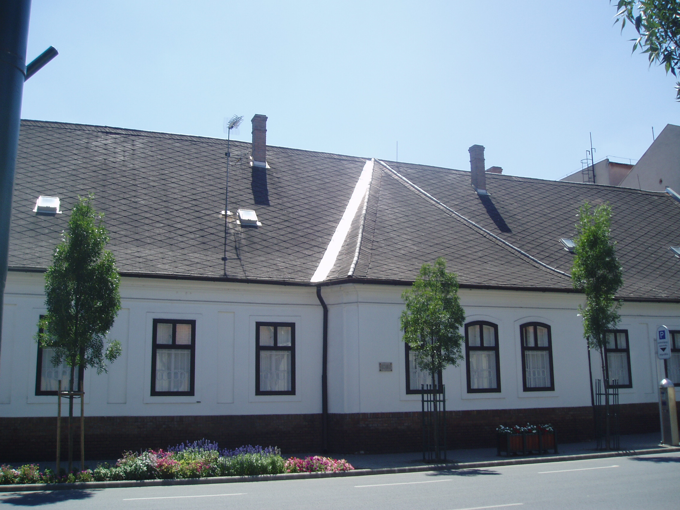 Nyilvános 997 | 1473 | Gyula, Kossuth utca 11. Egykori alispáni lak | A városképi jelentőségű, késő barokk stílusú épület a XVIII. század végén épült alispáni lakásnak. Többször átalakították, ennek ellenére feltűnően magas tetőzetével, a falsíkból erőteljesen kiugró középrizalitjával, szép arányaival hangulatos épülete az utcának. Nevezetes lakója volt Szombathelyi Antal (1803-1862), Békés megye alispánja 1848/49-ben. Kossuth Lajos 1841. január 9-én tartott esküvőjén a négy tanú egyike Szombathelyi volt, a haladó szellemű politikust tehát szorosabb baráti szálak fűzték Kossuth-hoz. 1949. április 29-én ő hirdette ki Gyulán a Függetlenségi Nyilatkozatot. Tevékenységéért a szabadságharc bukása után előbb halálra, majd öt évi börtönre ítélték, de Haynau rémuralmát túlélve végül kegyelmet kapott. A családi hagyomány szerint Petőfi is meglátogatta a Szombathelyi családot. A fénykép 2007 júliusában készült. Felh. irod.: Czeglédi Imre: Gyula útikalauz. 2. jav., bőv. kiad. Gyula, 1995 |