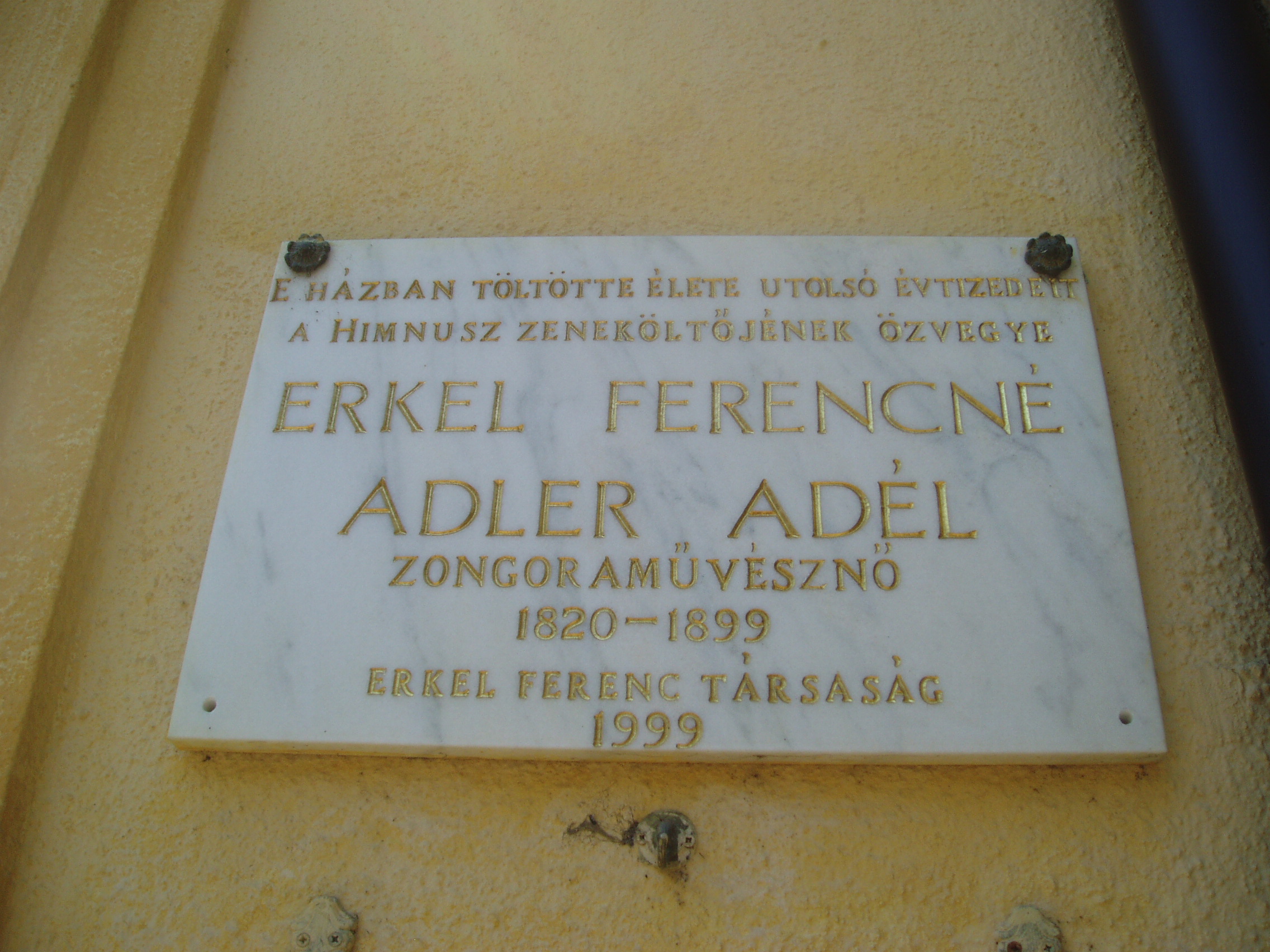 Nyilvános 1027 | 1537 | Gyula, Kossuth utca 30. | Az Almásy-kastélyhoz vezető kőhíddal egyvonalban, az utca túlsó oldalán álló földszintes lakóház egykor Erkel Rezső (Rudolf) vármegyei főorvos, Erkel Ferenc öccse lakása volt, ahol a zeneköltő is gyakran megfordult (János testvérük a szomszédban, a mai 28. szám alatt lakott). Jókai Mór két ízben is megfordult a házban. Először Laborfalvy Rózával 1848. augusztus 29-én kötött házasságuk után voltak a ház vendégei (Erkel Rezső korábban a Nemzeti Színház orvosa volt, onnét ismerték egymást). 1849 júliusában, a szabadságharc vége felé Jókai, Pestről elmenekülve az Erkel család vendégszeretetére bízta feleségét, akivel együtt volt a kor kiváló operaénekesnője, Schodelné Klein Róza is, akik a ház két udvari szobájában húzták meg magukat. Ide tért vissza Jókai feleségéért a világosi fegyverletétel után. Erről szól "Egy napom Gyulán" című szívszorító írása: "Ez volt életem legszomorúbb napja. 1849. augusztus 13-án nyitottam be a gyulai Erkel ház ajtaján ezzel a szóval: nincsen hazánk”. Jókai innét utazott álöltözetben, hamis papírokkal Tardonára. 1860-tól haláláig ebben a házban élt Erkel Ferencné Ádler Adél, miután különvált férjétől. Gyulán hunyt el, sírja a Szentháromság-temetőben van. Az épületen Erkel Rudolf, Ádler Adél és Jókai Mór emlékét márványtáblákon örökítették meg. A fénykép 2007 júliusában készült. Felh. irod.: Czeglédi Imre: Gyula útikalauz. 2. jav., bőv. kiad. Gyula, 1995 |