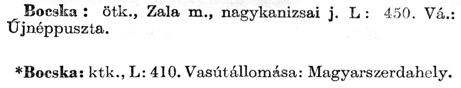 Nyilvános 2212 | 5733 | A szócikkek felismertetett szövege: | (A csillag után az 1972-es kiadású kiegészítő kötetből származó szöveg következik) Bocska: ötk., Zala m., nagykanizsai j. L : 450. Vá.: Újnéppuszta. *Bocska: ktk., L: 410. Vasútállomása: Magyarszerdahely. A szócikkek a következő lexikonból származnak: Cím: Új magyar lexikon Közreműködő: Berei Andor (1900-1979) (szerk.) Szerz. közl.: [szerk. Berei Andor et al.] Kiadás jelzés: 2. lny. Kiadás: Budapest : Akad. K., 1961-1962 Kötetei: 1., A - C 2., D - F 3., G - J 4., K - Me 5., Mf - R 6., S - Z 7. köt., A-Z Kiegészítő kötet (1972) Kiegészítő kötet, 1962÷1980 (1981) ETO jelzet: 03=945.11 Szakjelzet: 030 Cutter: U 28 Nyelv: magyar Megjegyzés: Bibliogr. a címszavak egy részének végén |