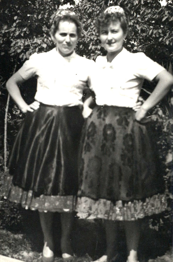 A balatonmagyaródi Kovács Ferencné és Biczó Lajosné népviseletben az 1960-as években. A fotó Kovács Ferencné gyűjteményéből való.