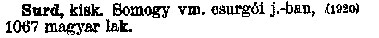 Surd kisk. Somogy vm. csurgói j. -ban, (1920) 1067 magyar  ...