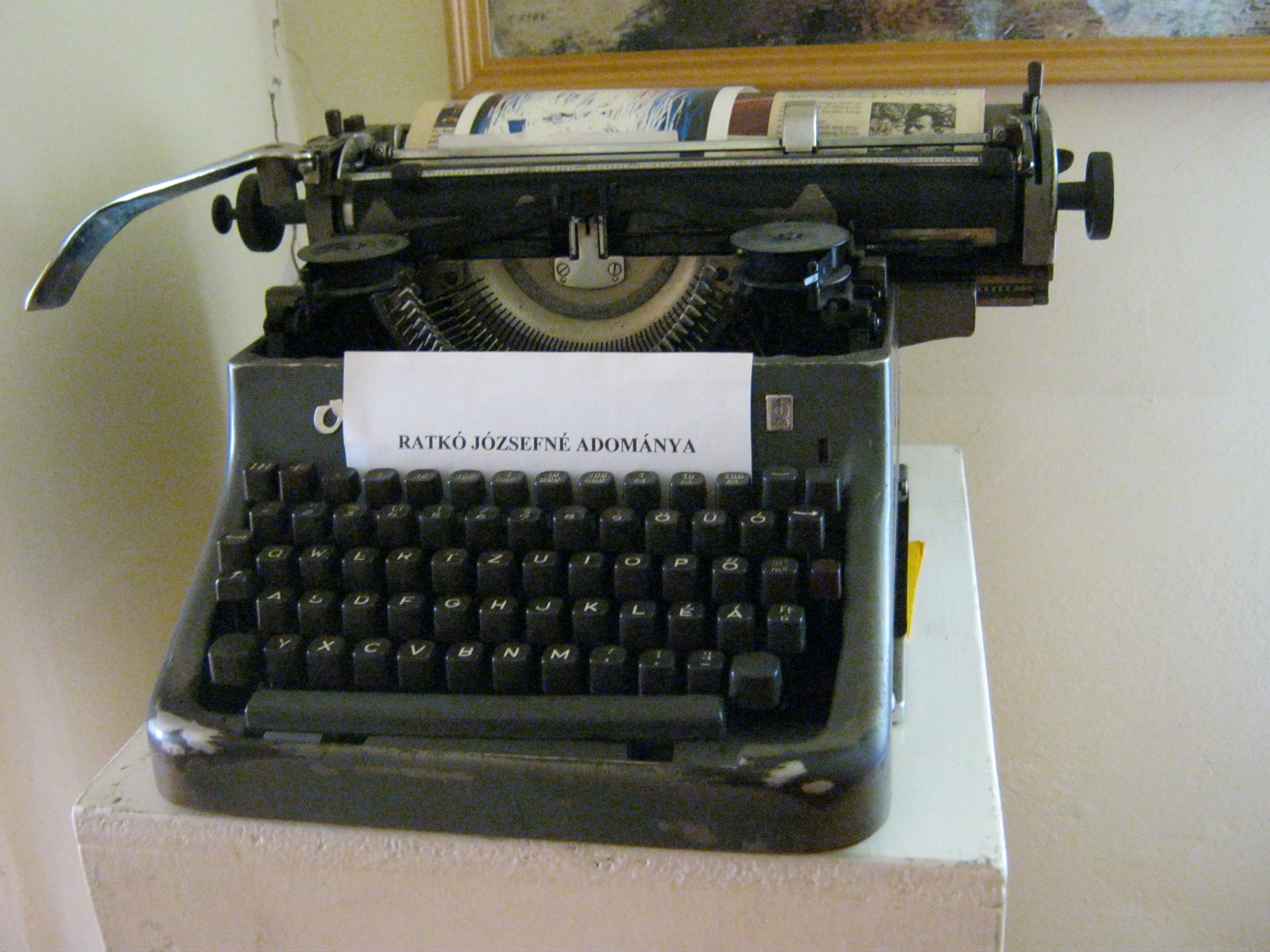 Nyilvános 959 | 1401 | Nagykálló, Szabadság tér 6. | Az 1700-as évek vége felé épült klasszicista eredetű épület Korányi Frigyes szülőháza. A magyar orvostörténet nagy alakja itt látta meg a napvilágot 1828. december 10-én. Édesapja, Kornfeld Sebald tehetős izraelita orvos volt. Szülőháza 1971 óta emlékházként működik eredeti bútorokkal, relikviákkal s más, Kálló életéhez kapcsolódó tárgyakkal. A képen Ratkó József költő írógépe látható. Ratkó rövid nyíregyházi működés után 1964-ben a nagykállói városi könyvtár igazgatója lett. Nagykállón hunyt el 1989-ben, a városi temetőkertben nyugszik. Felh. irod.: Harsányi Gézáné: Kálló kincsei. Nagykálló, 2007 |
