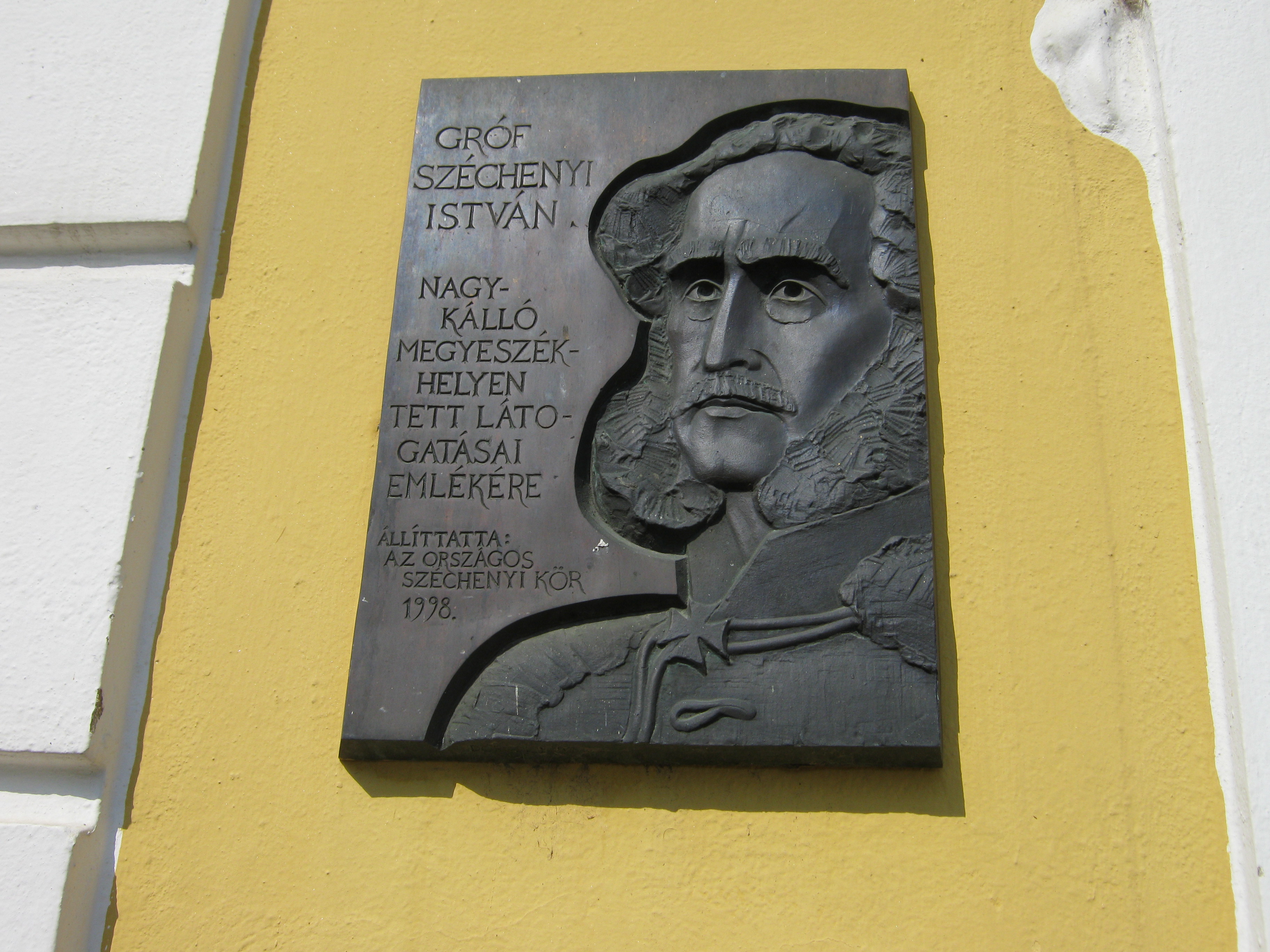 Nyilvános 973 | 1343 | Nagykálló, Szabadság tér 13. A régi vármegyeháza | Az egyemeletes, négyszögletes belső udvart körbezáró, copfstílusú középület 1769-80 között épült, olasz építészek, az Aprilis testvérek irányítása alatt. Dísztermében 1770 körül készült, szintén copf freskók láthatók. Homlokzatán 1998-ban avatták fel Széchenyi István emléktábláját. Felh. irod.: Harsányi Gézáné: Kálló kincsei. Nagykálló, 2007 A fénykép 2010 augusztus elején készült. |