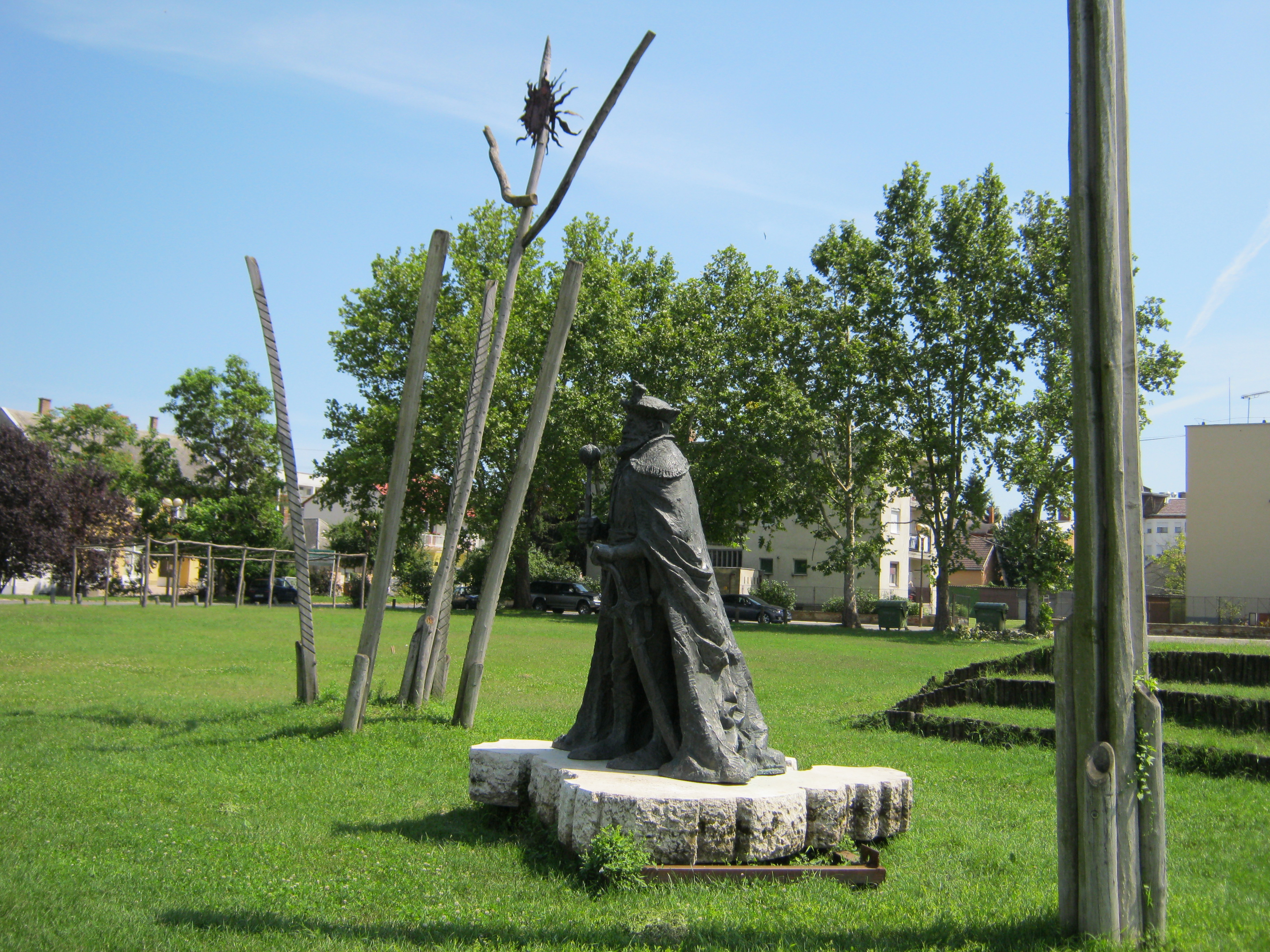 Nyilvános 1001 | 1508 | Nyírbátor: Bethlen Gábor emlékműve | A minorita templom közelében található tó partján áll Bethlen Gábor (1580-1629) erdélyi fejedelem, választott magyar király emlékműve. Bárhogyan is keresgéltem, semminemű információt nem találtam se alkotójáról, se magáról a szoborról. A fénykép 2010 augusztus elején készült. |
