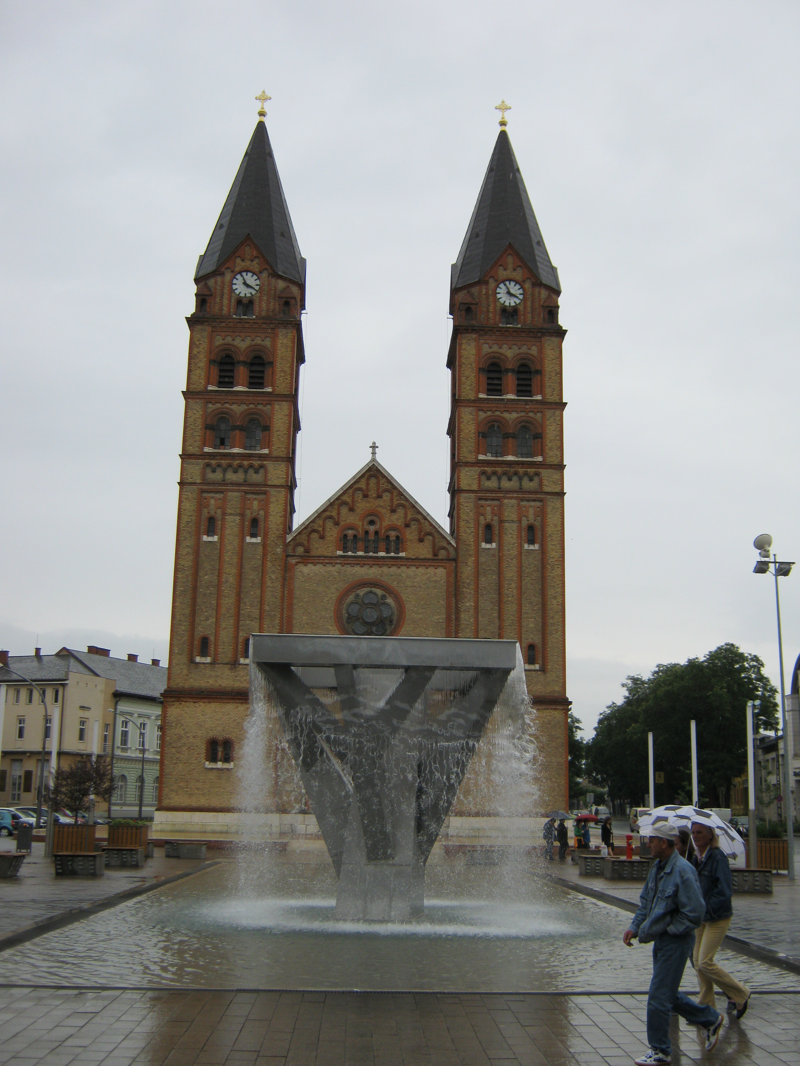 Nyilvános 982 | 1582 | Nyíregyháza, Kossuth tér: Római katolikus templom | A Kossuth tér leghatalmasabb épülete a Magyarok nagyasszonya titulust viselő római katolikus templom. 1902-ben szentelték fel a kettős tornyú, neoromán épületet. A neoromán stílusjegyek nemcsak az architektúrában, hanem a templom berendezésében is megnyilvánulnak. Orgonája a pécsi Angster-gyár terméke. A fénykép 2010 augusztus elején készült. Felh. irod.: www.nyiregyhaza.plebania.net |