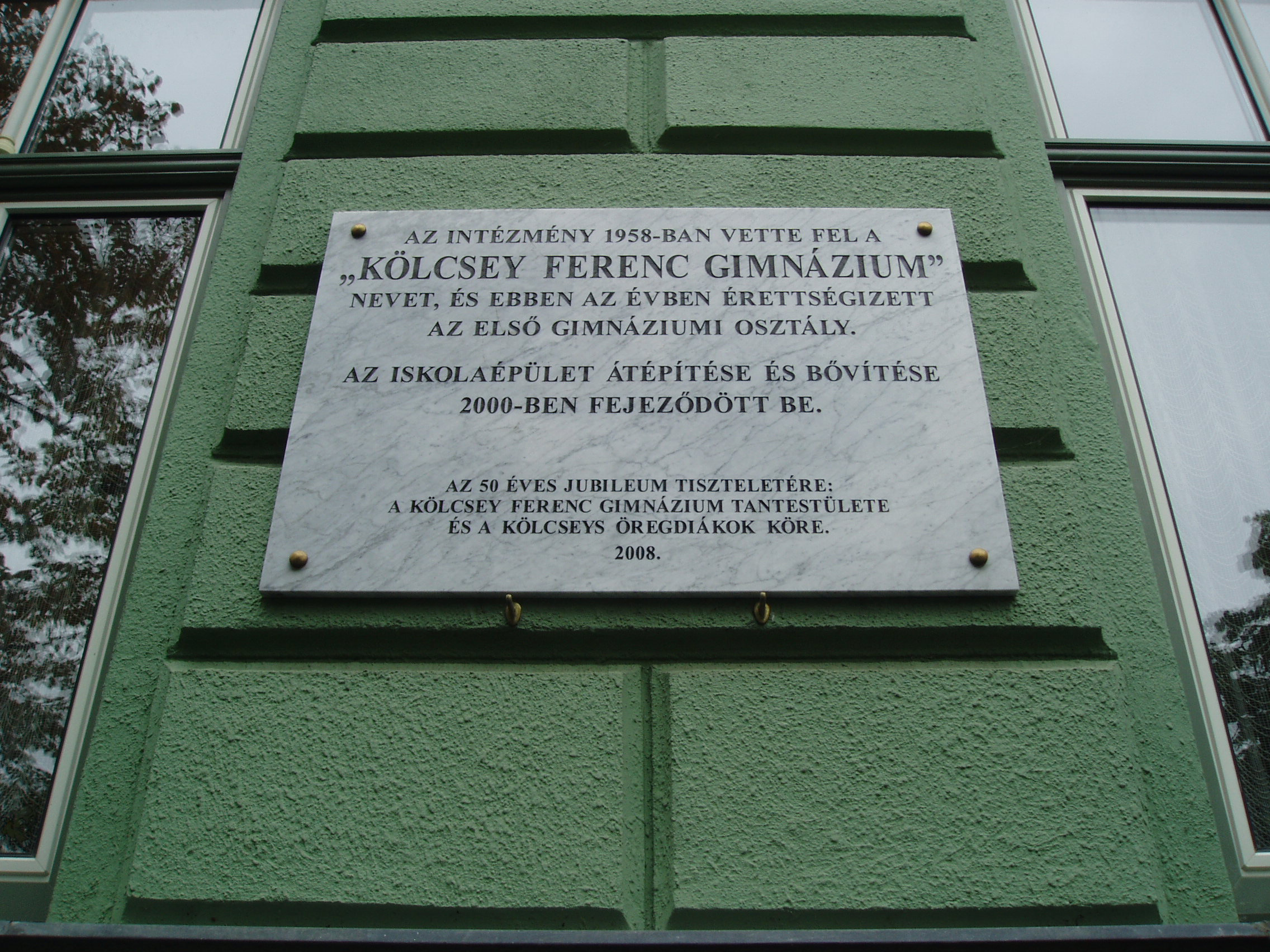 Nyilvános 980 | 1393 | Nyíregyháza, Széchenyi utca 6. Kölcsey Ferenc Gimnázium | Épületét 1901-ben, Barzó Mihály tervei alapján, pénzügyigazgatósági székháznak emelték. 1925-től, 1957-ben történt megszűnéséig középfokú tanítóképző intézetként működött. Azóta a Kölcsey gimnázium otthona. Az első gimnáziumi osztály 1954/55-ben még egy korábbi épületben kezdte meg a tanulást, de már itt érettségizett 1959-ben. Az iskolaépület homlokzatán több emléktábla idézi az egykori tanítóképző, majd gimnázium neves tanárainak és diákjainak alakját. Felh. irod.: www.kolcsey-nyh.sulinet.hu A fénykép 2010 augusztus elején készült |