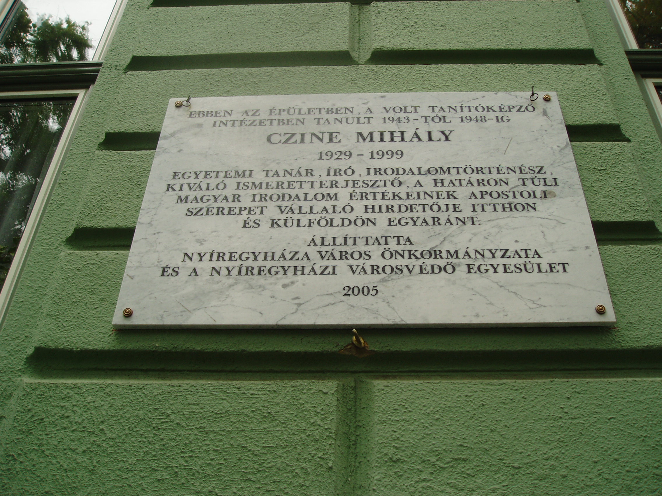 Nyilvános 959 | 1319 | Nyíregyháza, Széchenyi utca 6. Kölcsey Ferenc Gimnázium | Épületét 1901-ben, Barzó Mihály tervei alapján, pénzügyigazgatósági székháznak emelték. 1925-től, 1957-ben történt megszűnéséig középfokú tanítóképző intézetként működött. Azóta a Kölcsey gimnázium otthona. Az első gimnáziumi osztály 1954/55-ben még egy korábbi épületben kezdte meg a tanulást, de már itt érettségizett 1959-ben. Az iskolaépület homlokzatán több emléktábla idézi az egykori tanítóképző, majd gimnázium neves tanárainak és diákjainak alakját. Czine Mihály (1929-1999) irodalomtörténész ebben az épületben tanult 1943 és 1948 között, mint a tanítóképző növendéke. Felh. irod.: www.kolcsey-nyh.sulinet.hu A fénykép 2010 augusztus elején készült |