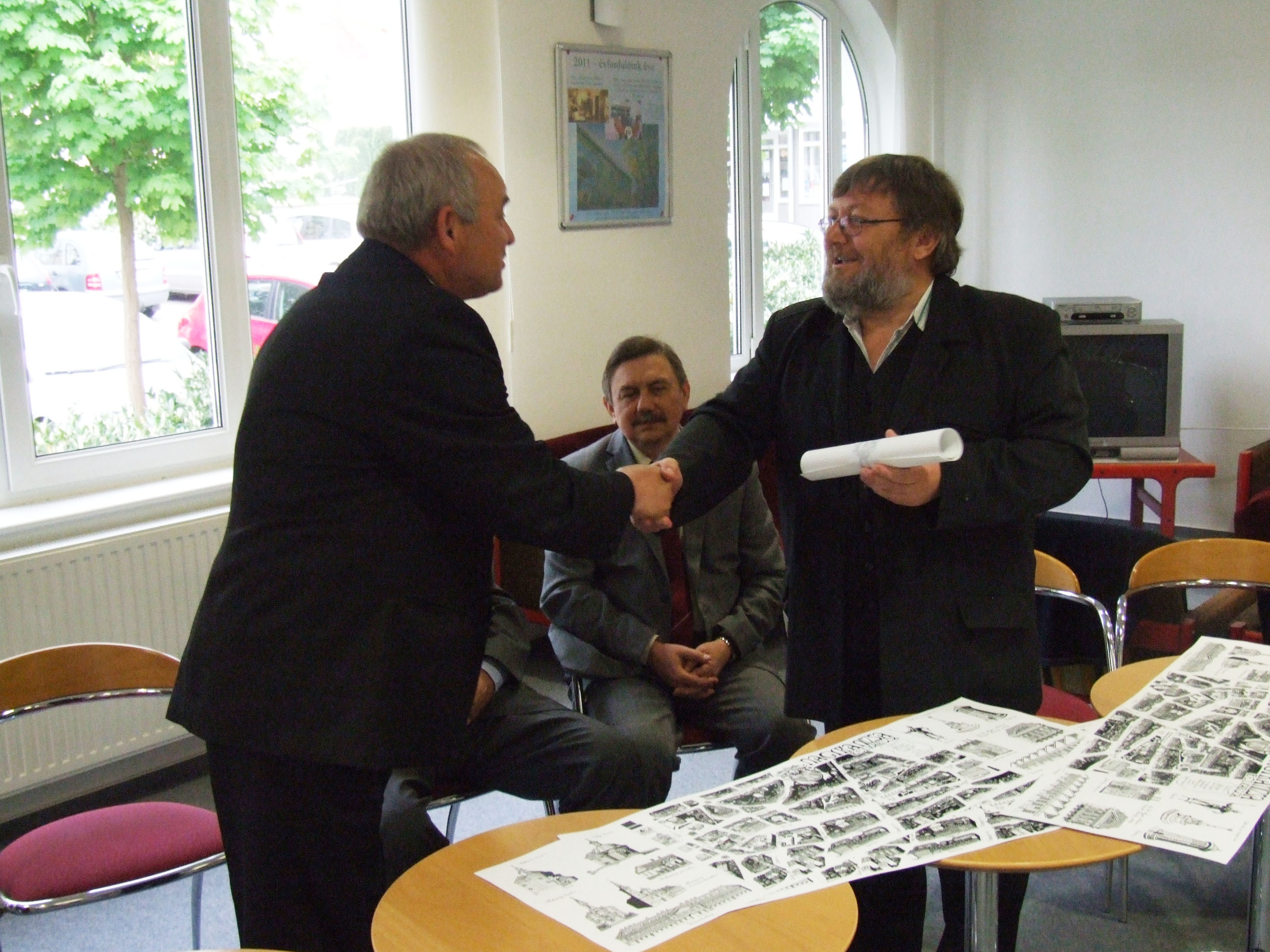 Nyilvános 1279 | 2488 | Nagykanizsa belvárosa – madártávlati kép | 2009 ősze óta folyt az munka, melynek eredményeként elkészült Nagykanizsa belvárosa madártávlati képe, Somogyi Győző alkotása. Bemutatására 2011. április 26-án, kedden 10,30-kor került sor a Halis István Városi Könyvtárban. Sokan támogatták a könyvtár és a Könyvtárpártoló Alapítvány törekvését – mondta el Czupi Gyula, a könyvtár igazgatója és az alapítvány képviselője. Az egész időszakban komoly segítséget jelentett a média képviselőinek támogatása, ezért az alkotást először az anyagi támogatóknak és a média képviselőinek mutatták be. A támogatók közül megjelent a Nagykanizsa Önkormányzatának képviseletében Dénes Sándor alpolgármester, a DKG-EAST képviseletében Szabó József, a nagykanizsai Városvédő Egyesület elnöke, Cserti Tibor, valamint a nagykanizsai Tourinform vezetője, Bali Vera. A magántámogatókat ezen a sajtótájékoztatón Tarnóczky Attila képviselte. A támogatók nem csak tanulmányozhatták az elkészült alkotást, hanem egy-egy példányt magukkal is vihettek ebből az alkalomból. Ugyancsak a kép egy-egy másolatával gazdagodva hagyták el a könyvtárat a média képviselői. A sajtótájékoztatón megjelenni nem tudó Kanizsa Plaza, a Sponzor Tours (Nagykanizsa), valamint a KKK Senior Kosárlabda Csapat később kapják meg a madártávlati képet, akárcsak azok, akik egyéni támogatásukkal segítették az alkotás létrejöttét. A könyvtár 60 éves születésnapjára készült művet nagyobb számban először a május 1-jei ünnepi program azon (300-nál több könyvet kölcsönző) meghívottjai kapják, akik emléklapot is vehetnek át ebből az alkalomból. Május 1-jétől a madártávlati kép meg is vásárolható a könyvtárban. Az érvényes könyvtári tagsággal rendelkezők kedvezményesen juthatnak hozzá. |