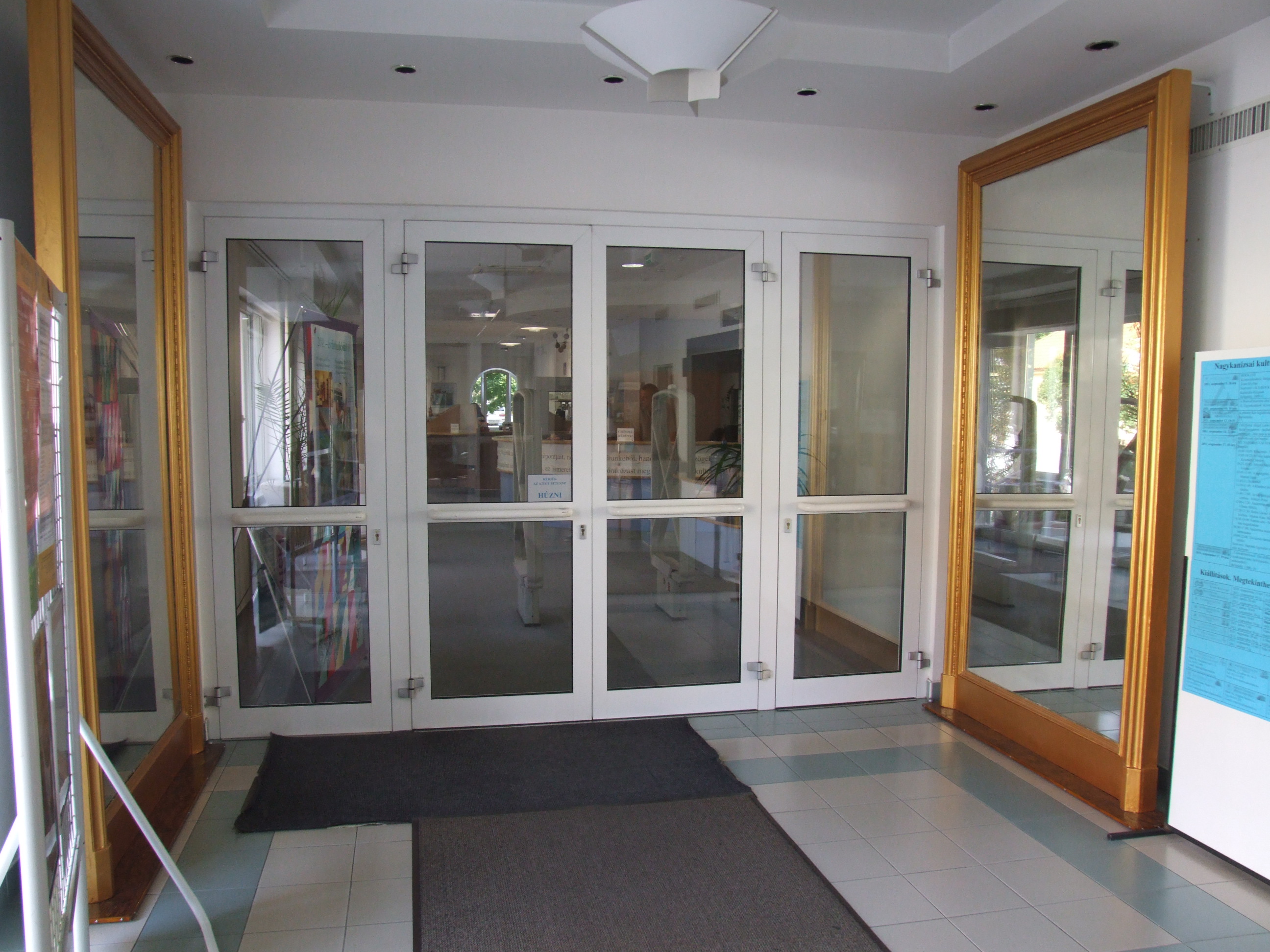 Nyilvános 1255 | 2543 | A 60 éves születésnapját ünneplő könyvtár a kezdetek (1950-es évek) után a Sugár út 3-ban töltött időszak bemutatására készül (1956-1988). A bemutató több eleme látható már az épületben, köztük az a két nagy méretű tükör is, mely a Sugár úti épület dísze volt. A tükrök a bejáratnál kerültek elhelyezésre Tarnóczky Attila felújító munkája után. (2011. szeptember 15.) | |