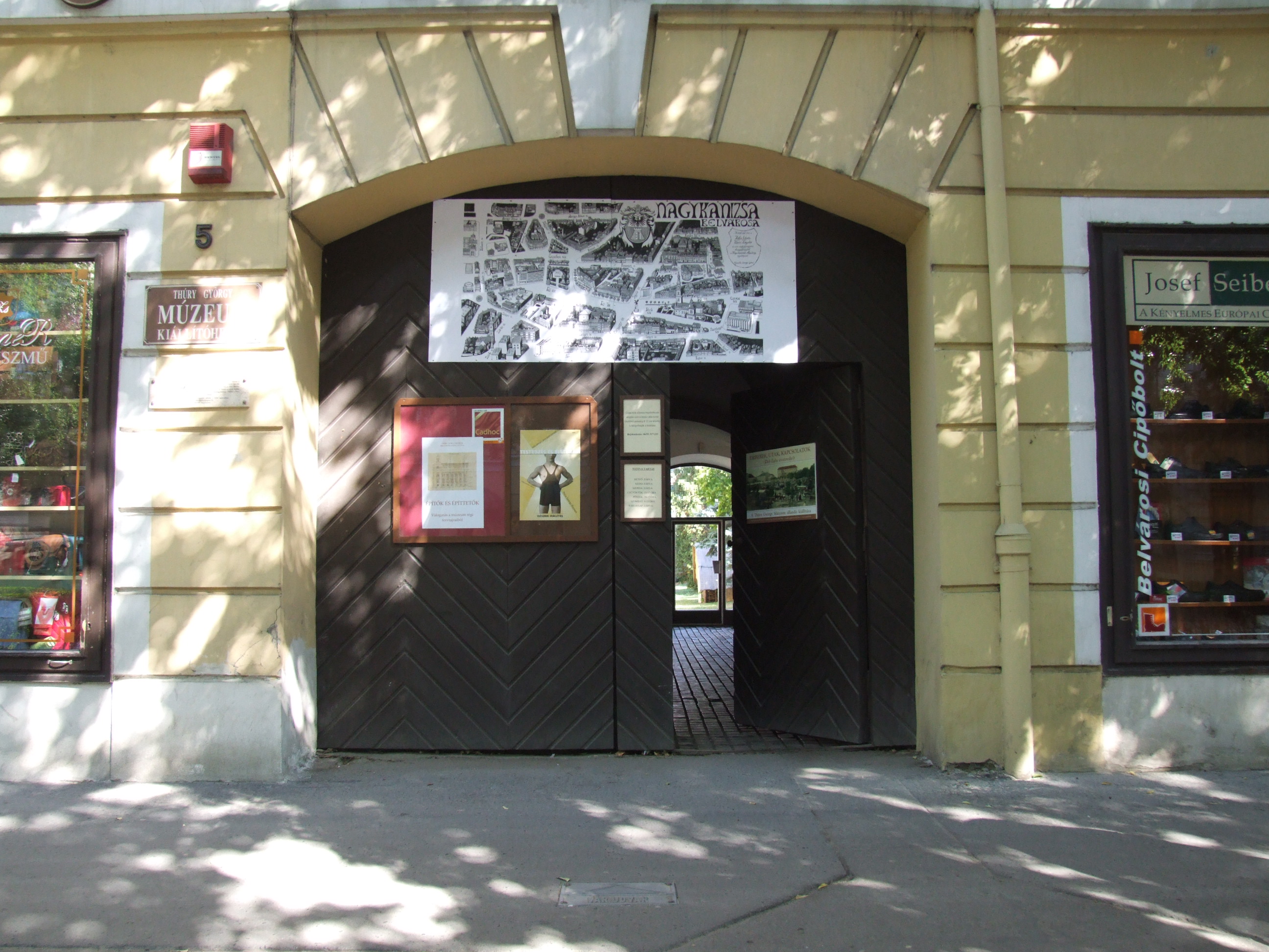 2011.09.23. Madártávlati kép felrakása a Thúry György Múzeum kiállítóhelyének bejárata fölé