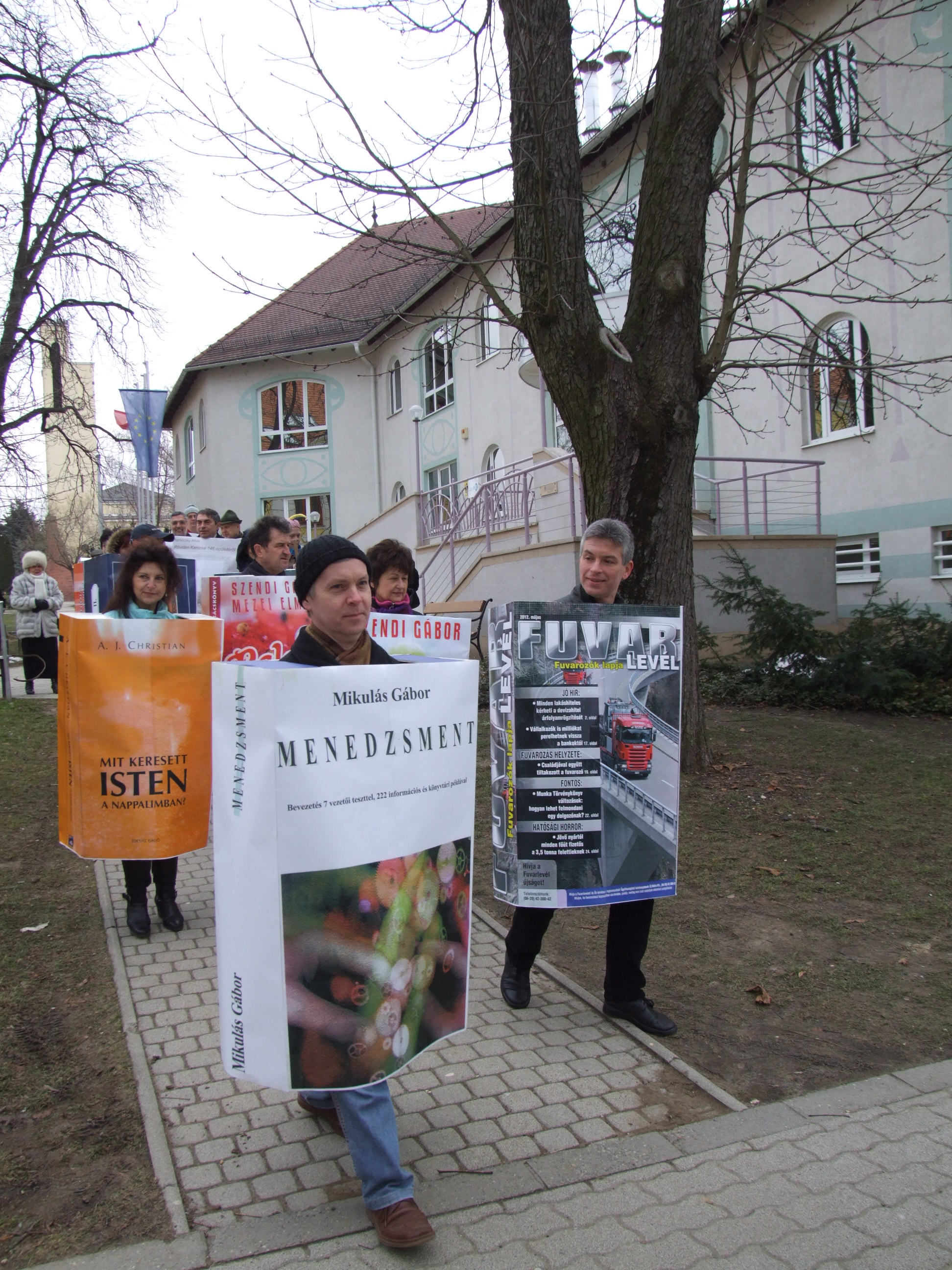 Nyilvános 1379 | 2980 | 2013. február 9. A farsangi fánkfesztiválra készülve felhívásban kértük olvasóinkat, hogy öltsék magukra kedves könyvüket. Egy „könyvespolcnyi” jelentkező vette magára kedves olvasmányát, az ő vonulásukról készültek ezek a képek. A környezetükben néhol láthatók a Nagykanizsai Gólyalábasok, akik szintén a könyvtárhoz kötődnek. A „felvonuló kötetek” a könyvtár épületében még megtekinthetők. | |