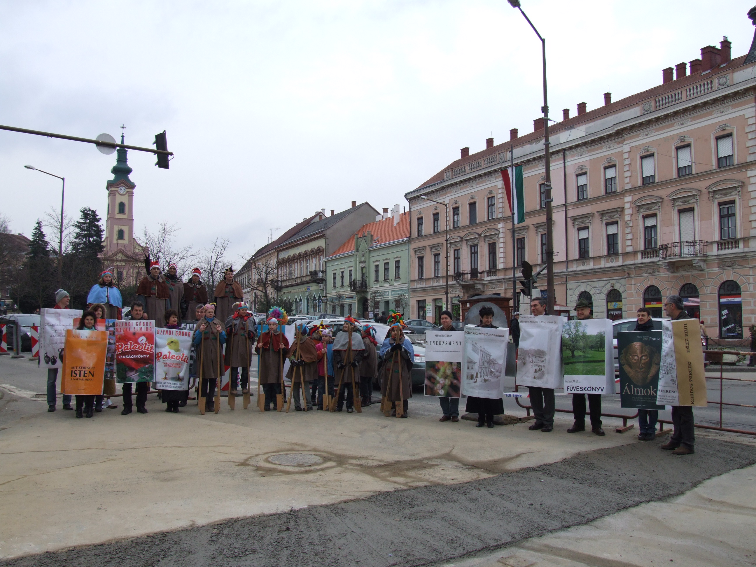 Nyilvános 1004 | 1468 | 2013. február 9. A farsangi fánkfesztiválra készülve felhívásban kértük olvasóinkat, hogy öltsék magukra kedves könyvüket. Egy „könyvespolcnyi” jelentkező vette magára kedves olvasmányát, az ő vonulásukról készültek ezek a képek. A környezetükben néhol láthatók a Nagykanizsai Gólyalábasok, akik szintén a könyvtárhoz kötődnek. A „felvonuló kötetek” a könyvtár épületében még megtekinthetők. | |