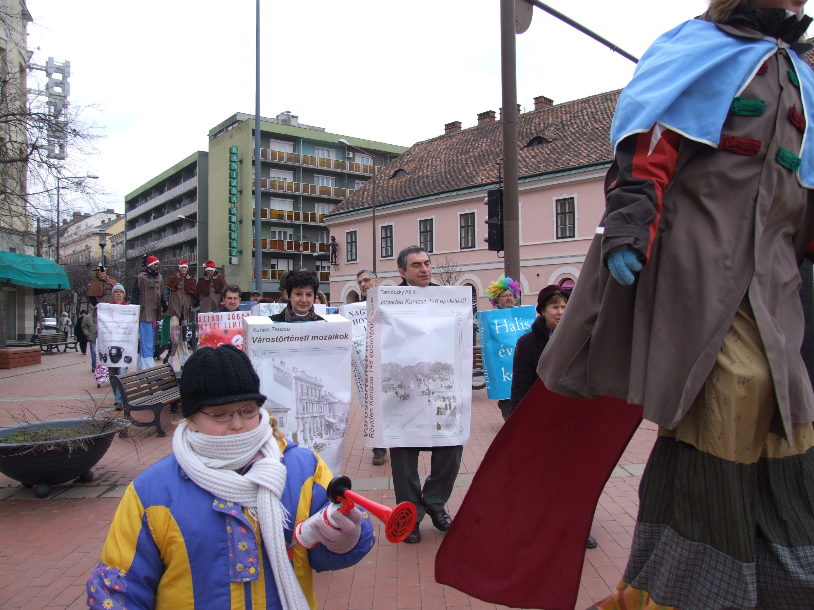 Nyilvános 1013 | 1478 | 2013. február 9. A farsangi fánkfesztiválra készülve felhívásban kértük olvasóinkat, hogy öltsék magukra kedves könyvüket. Egy „könyvespolcnyi” jelentkező vette magára kedves olvasmányát, az ő vonulásukról készültek ezek a képek. A környezetükben néhol láthatók a Nagykanizsai Gólyalábasok, akik szintén a könyvtárhoz kötődnek. A „felvonuló kötetek” a könyvtár épületében még megtekinthetők. | |