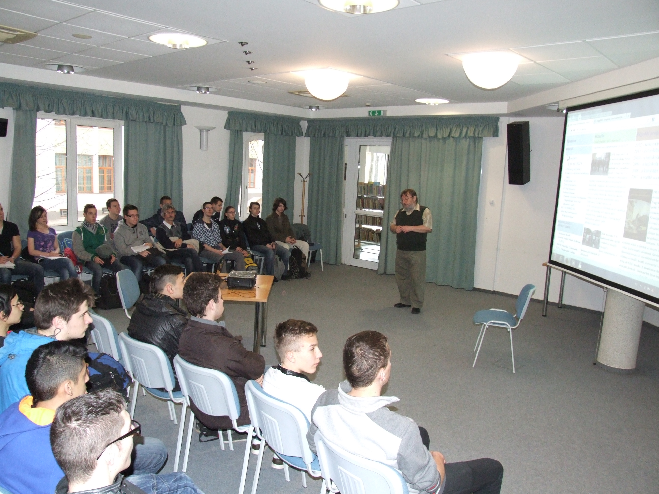2014.03.05. Cserháti iskolások (9.a és 10.c) a könyvtárban